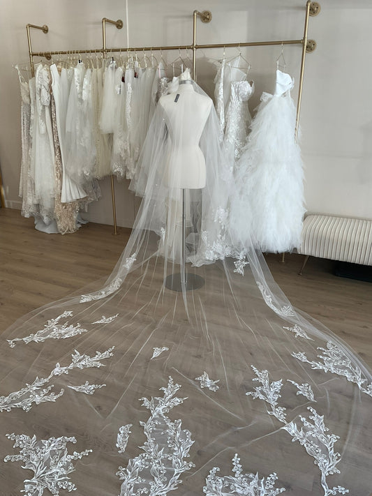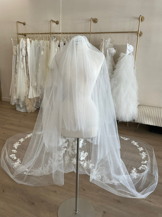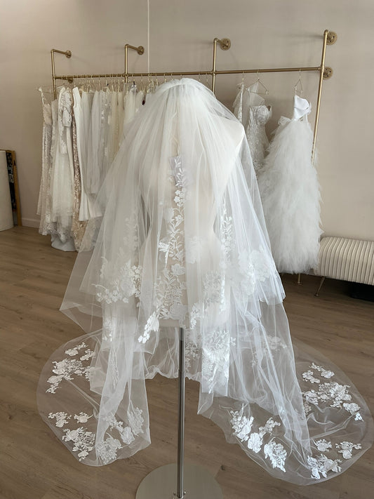 Pronvoias - Double Layer Veil w/ flower appliques (Cathedral)
