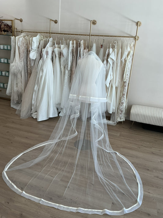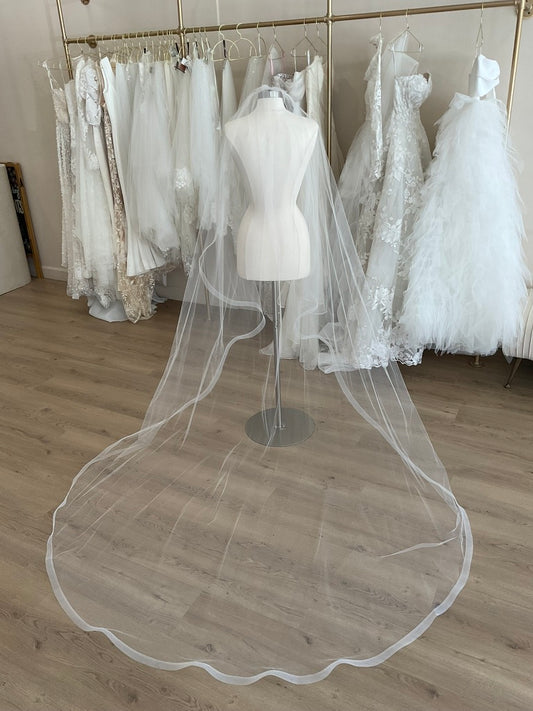 Pnina Tornai - Two-Tier Ribbon Edge Cathedral Length Veil
