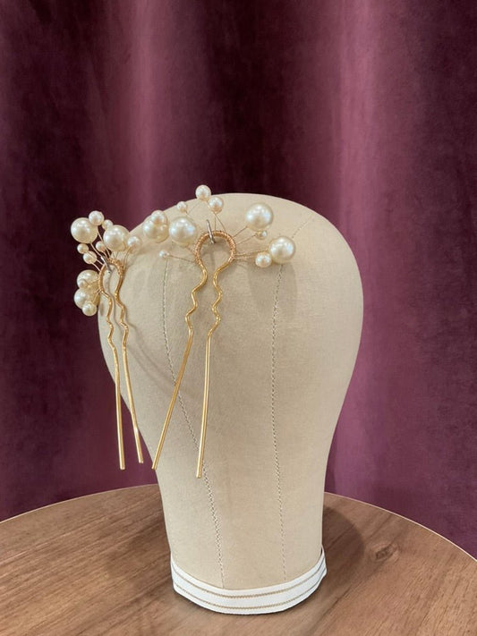 Cocoe Voci - Set of Two Atomic Ivory Pearl and Gold Hairpins