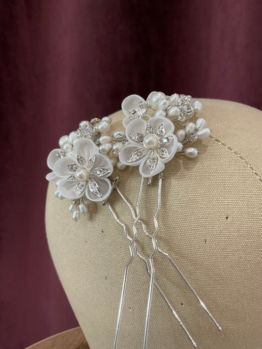 Cocoe Voci - Set Of Two Organza Flowers, Freshwater Pearls, Crystals