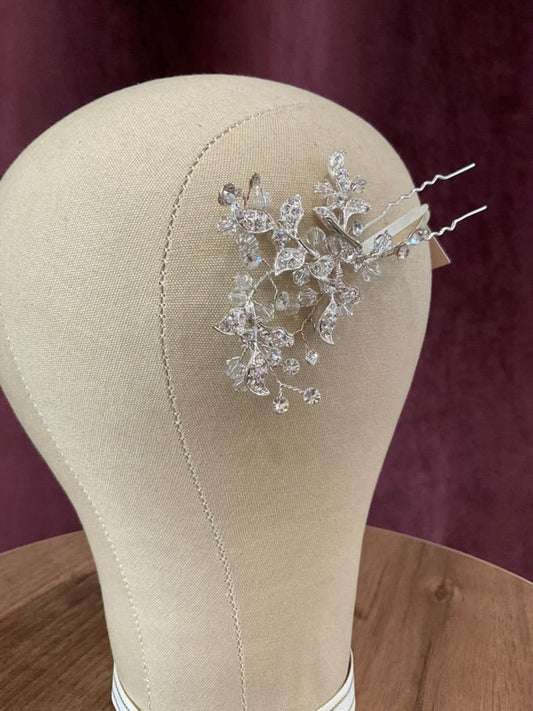 Cocoe Voci - Siilver Hair Pin with Metal Leaves and Crystals