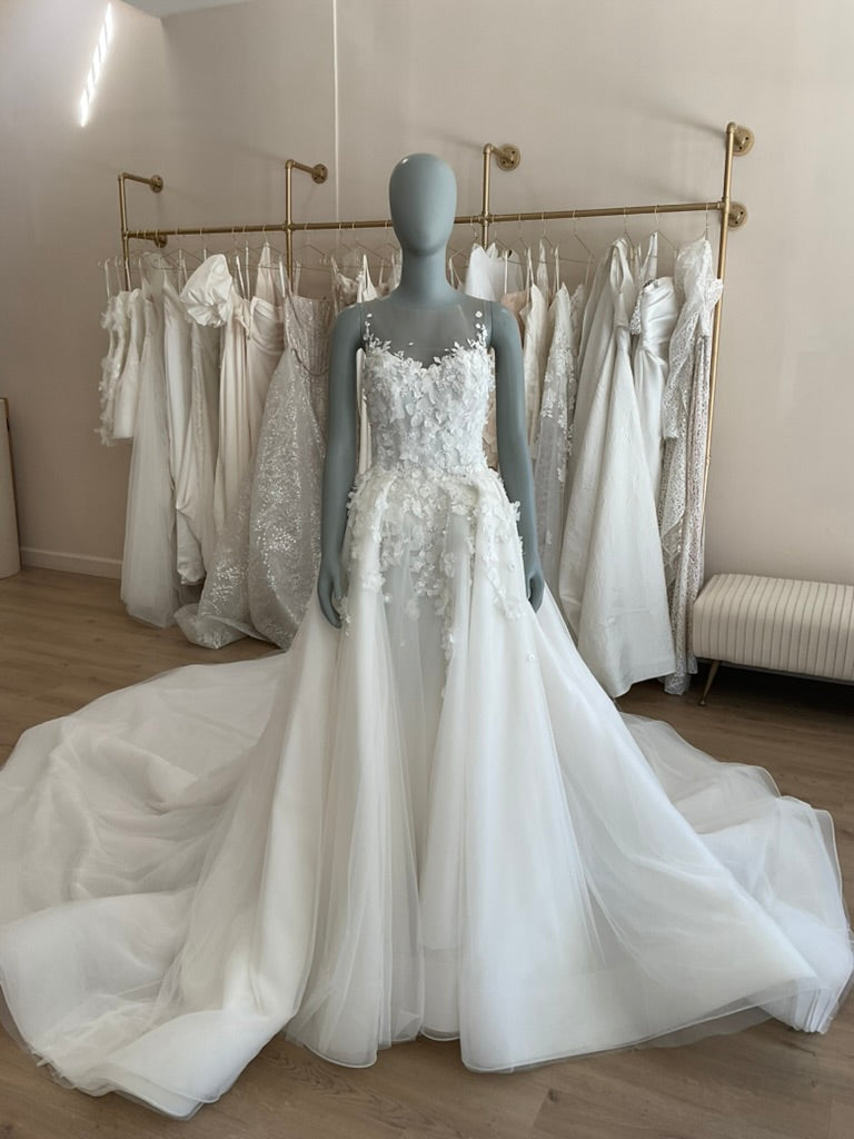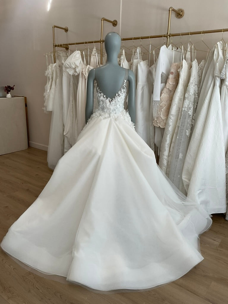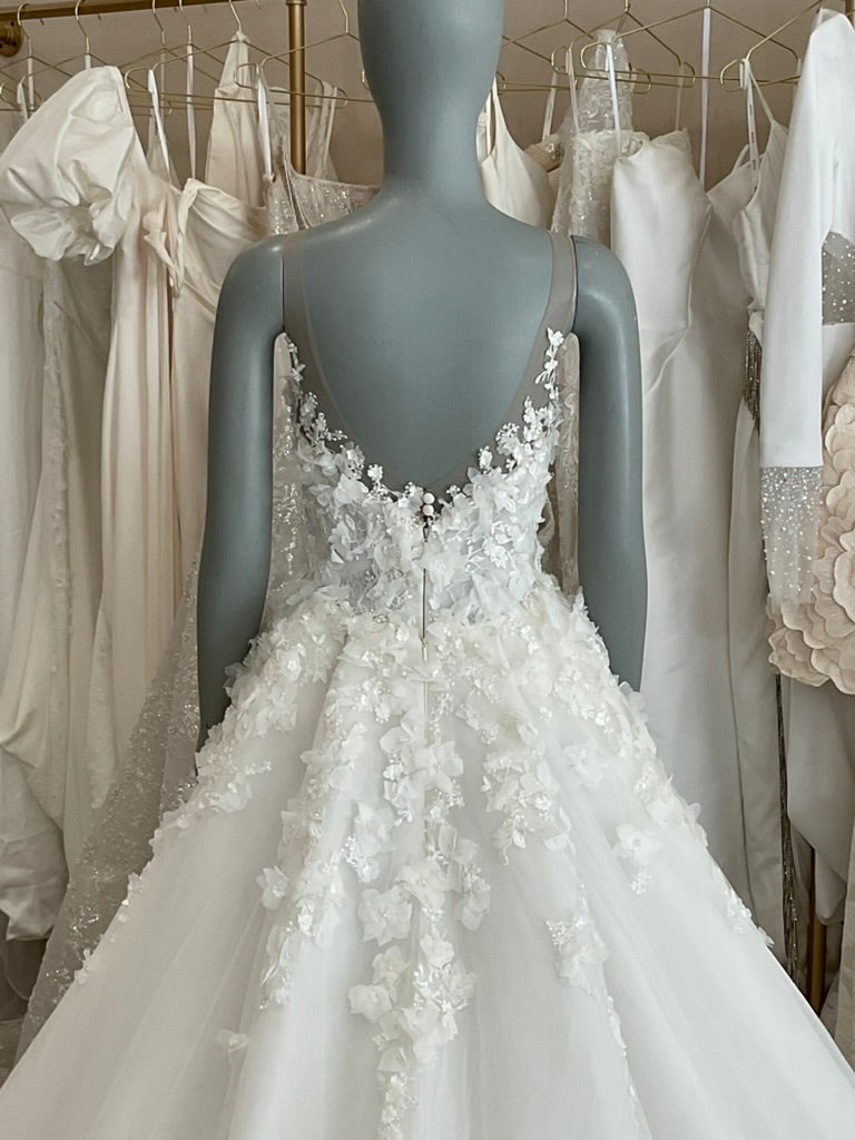 LOCAL TO LA-We would love to host you for a private one hour appointment in our Beverly Hills Showroom. During our time together, you will try on this gown and any others you would like and bring two guests with you. Click here for an in-store Appointment