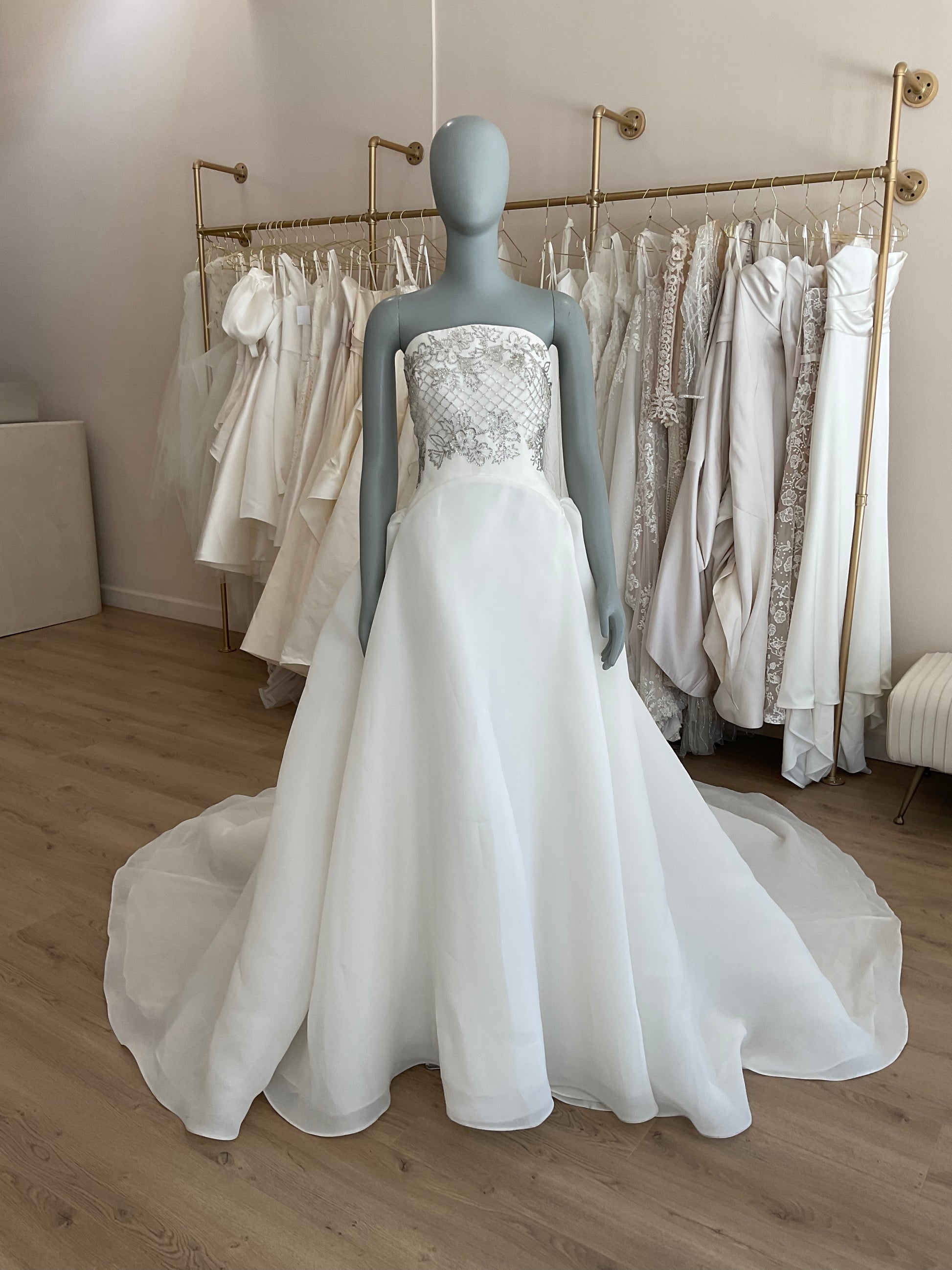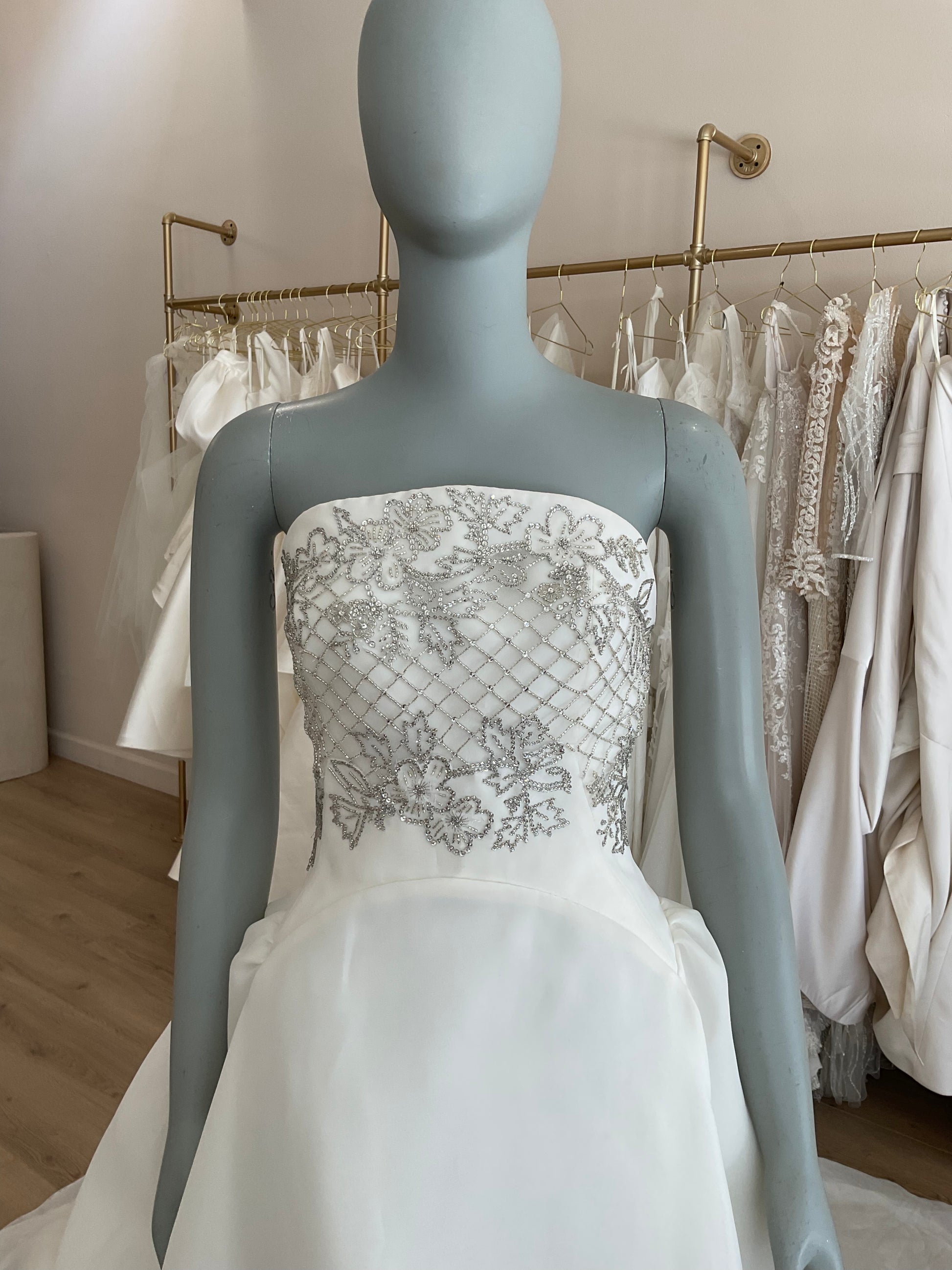 LOCAL TO LA-We would love to host you for a private one hour appointment in our Beverly Hills Showroom. During our time together, you will try on this gown and any others you would like and bring two guests with you. Click here for an in-store Appointment