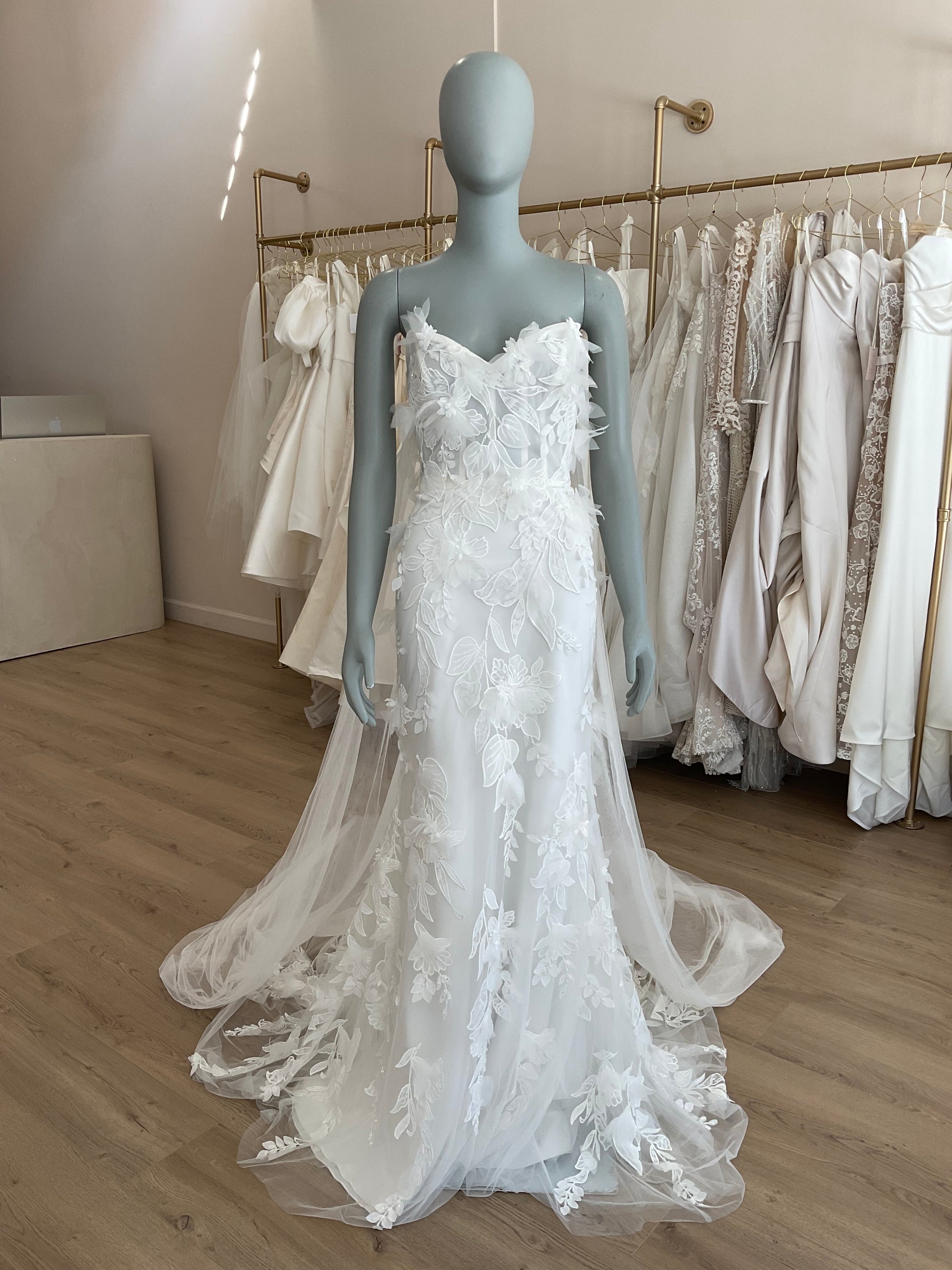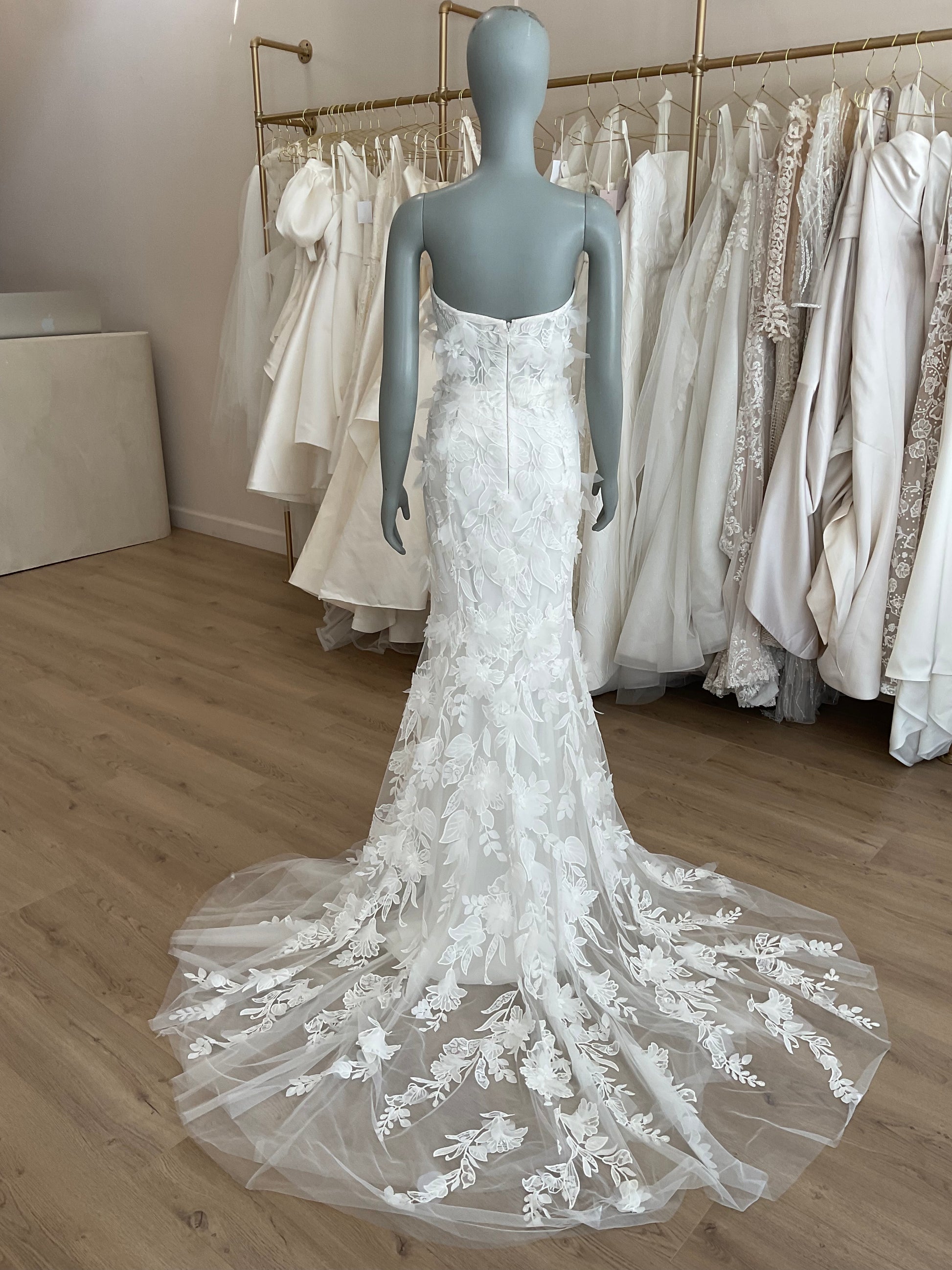NOT LOCAL TO LA-Schedule a free 30 minute virtual fitting appointment before it's too late. Our inventory of hard to find wedding dresses is limited, and this is the only dress in stock and is available on a first come, first-served basis. Click here for a virtual Appointment
