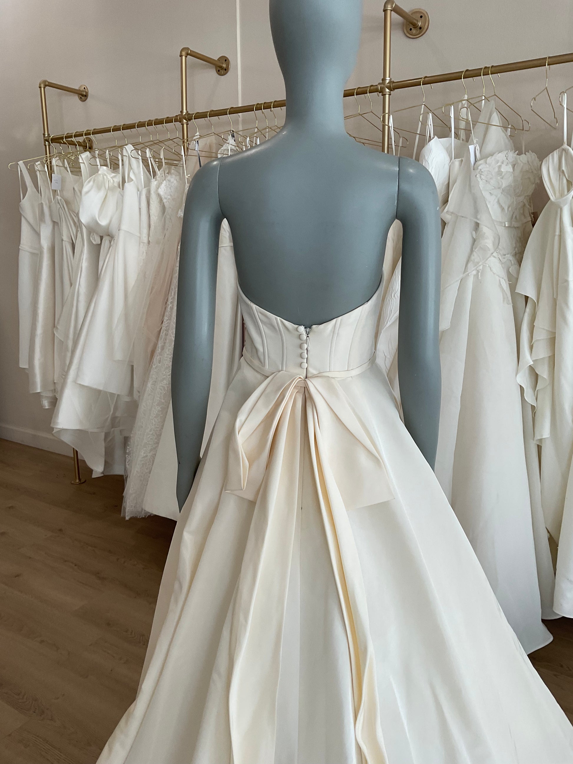LOCAL TO LA-We would love to host you for a private one hour appointment in our Beverly Hills Showroom. During our time together, you will try on this gown and any others you would like and bring two guests with you. Click here for an in-store Appointment