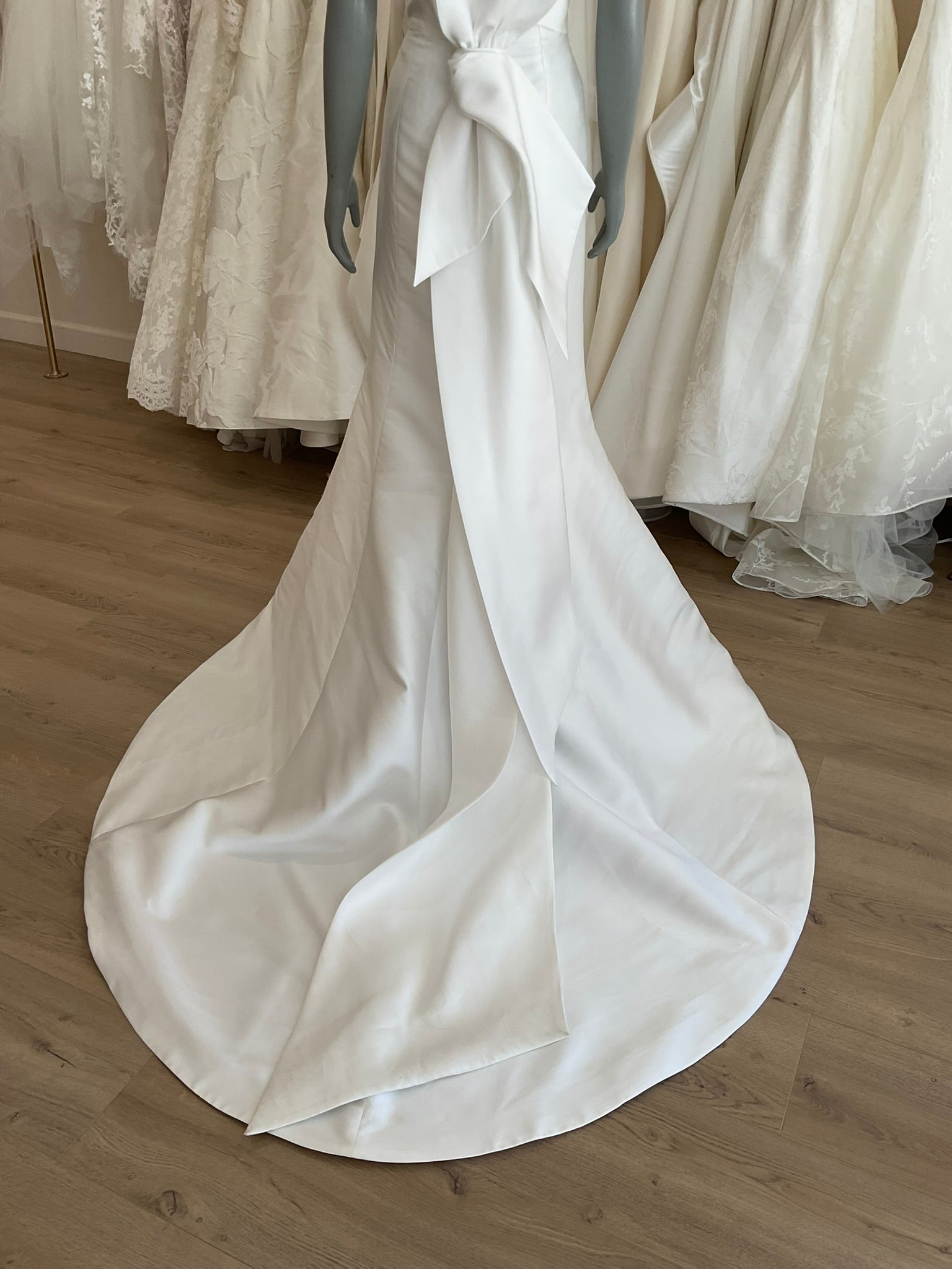 LOCAL TO LA-We would love to host you for a private one hour appointment in our Beverly Hills Showroom. During our time together, you will try on this gown and any others you would like and bring two guests with you. Click here for an in-store Appointment