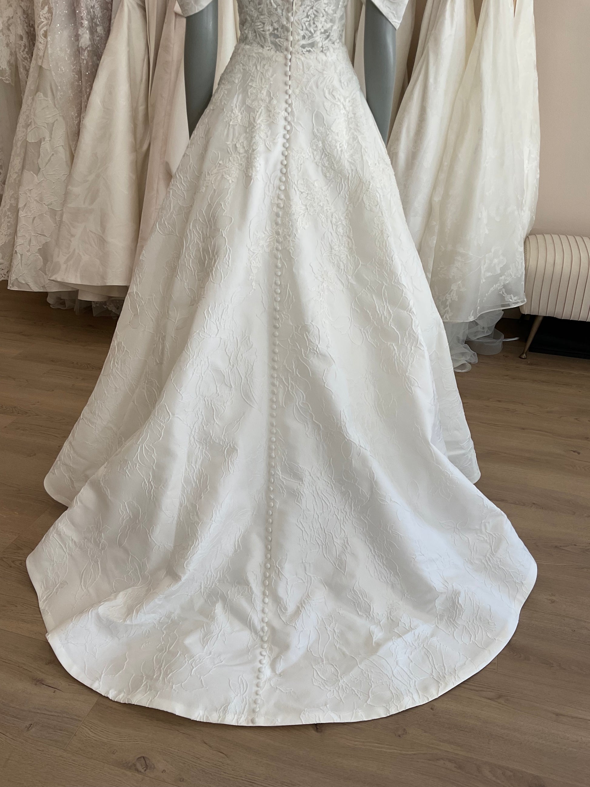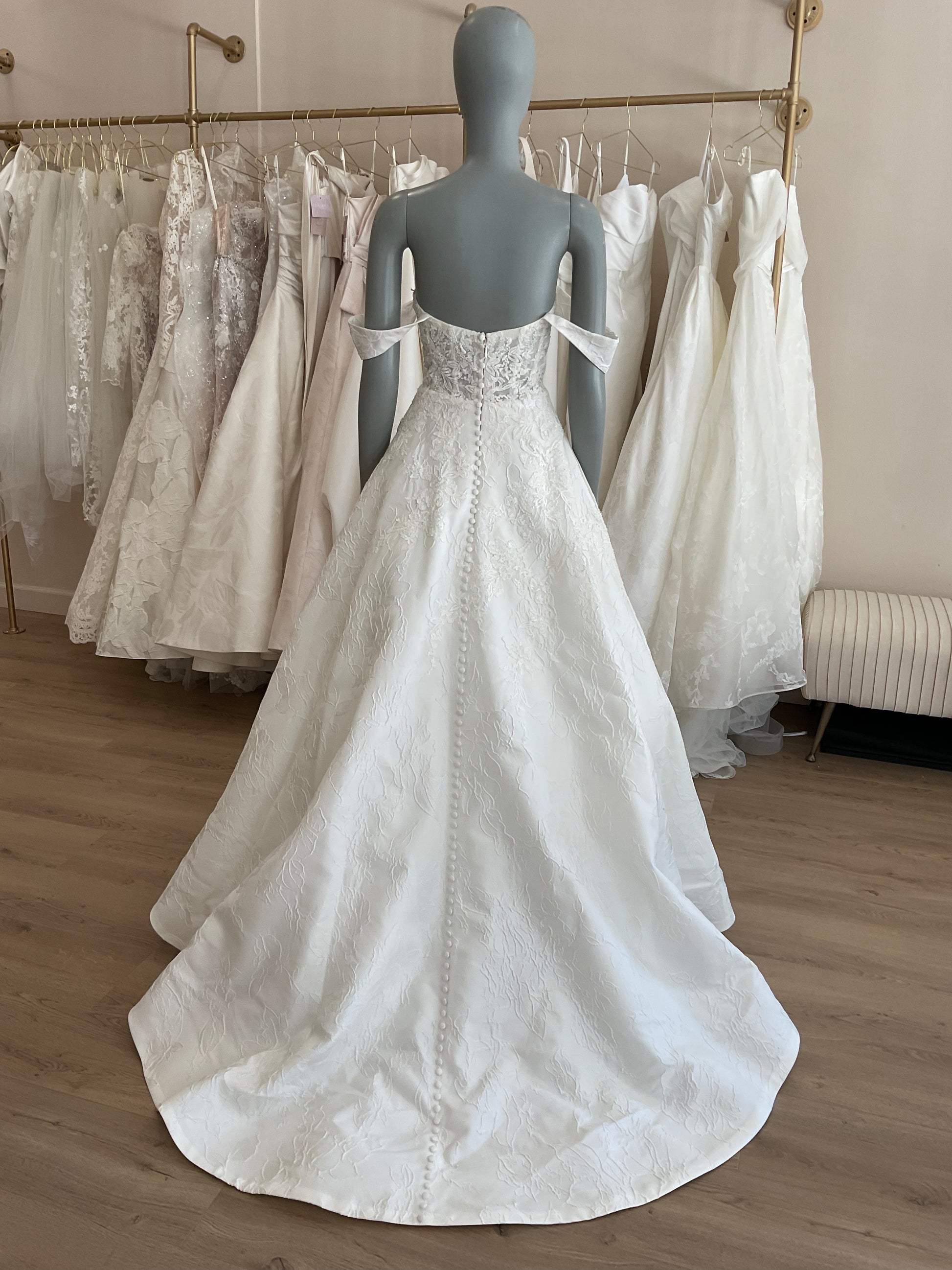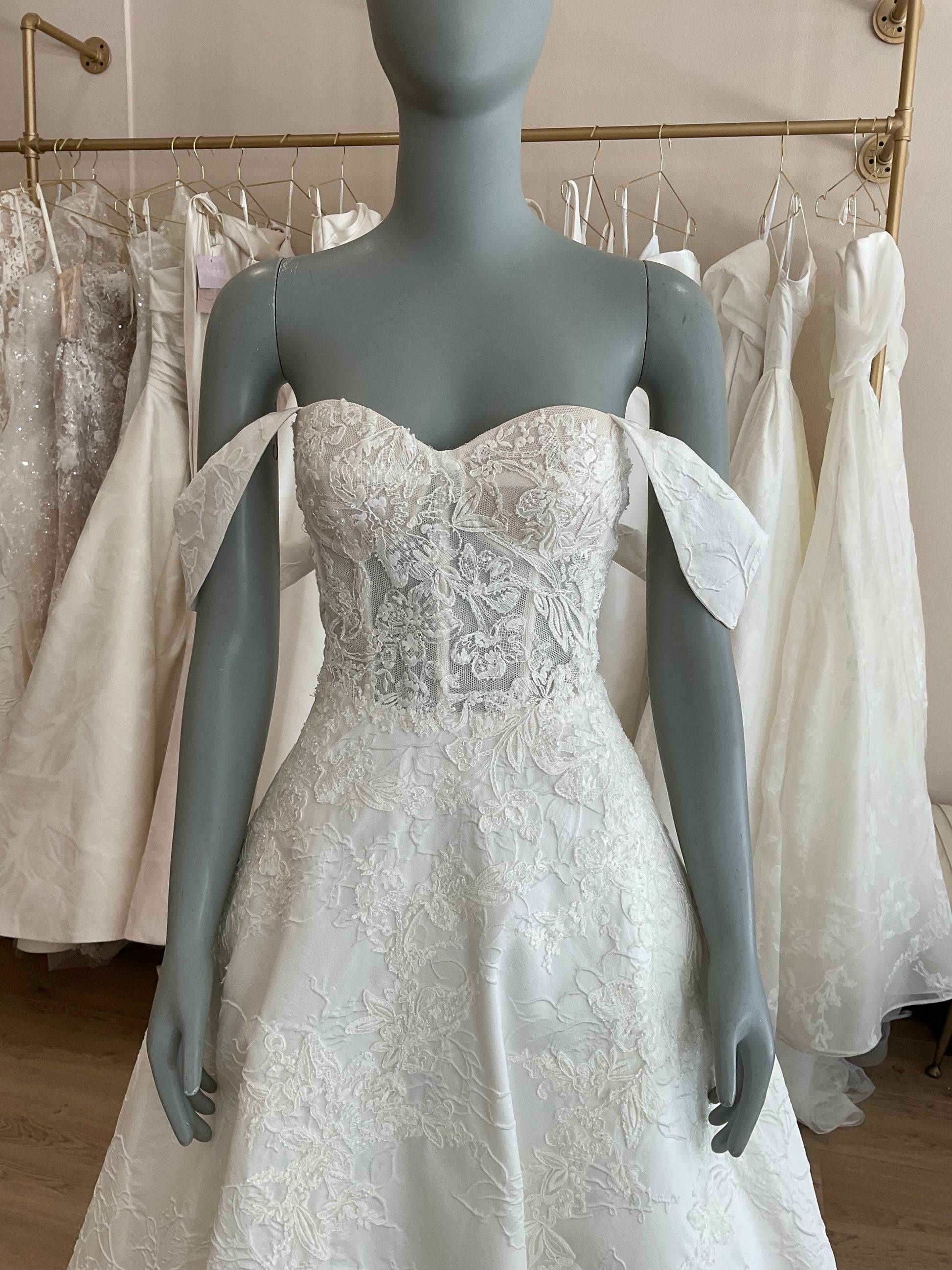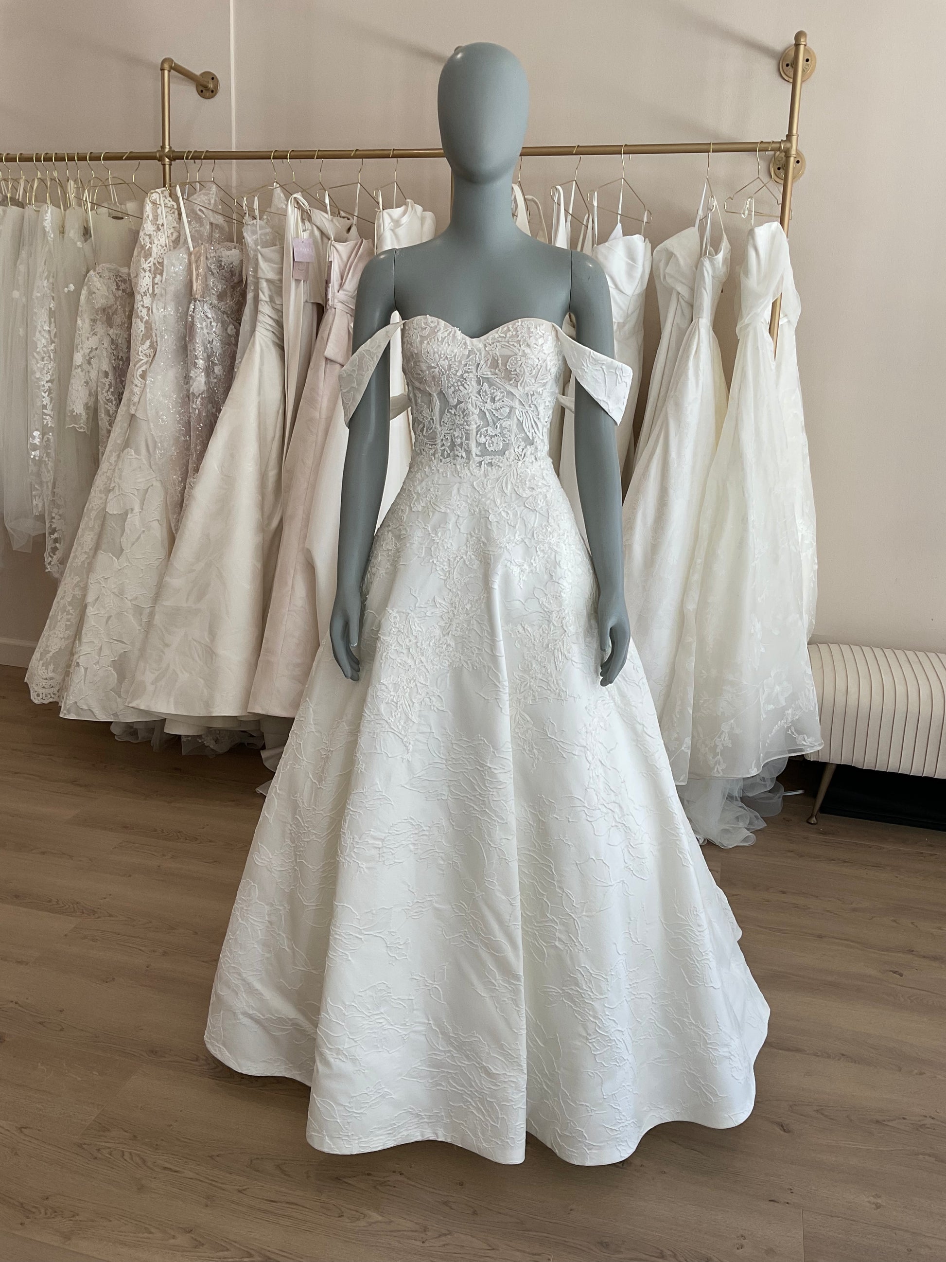 NOT LOCAL TO LA-Schedule a free 30 minute virtual fitting appointment before it's too late. Our inventory of hard to find wedding dresses is limited, and this is the only dress in stock and is available on a first come, first-served basis. Click here for a virtual Appointment