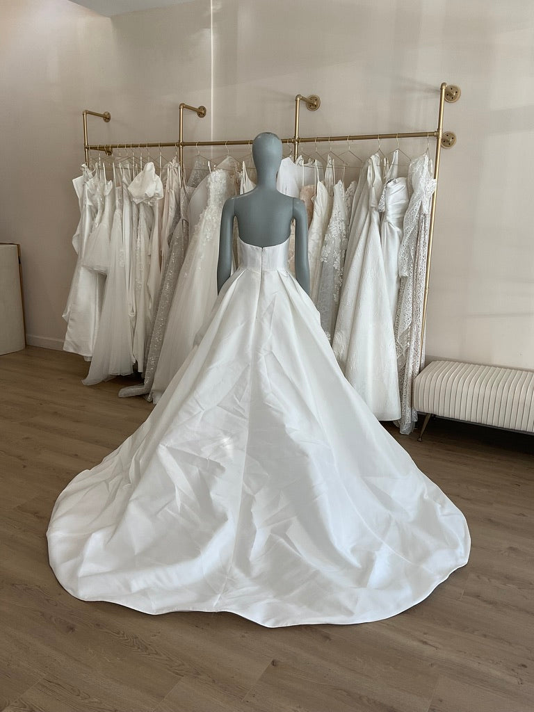 LOCAL TO LA-We would love to host you for a private one hour appointment in our Beverly Hills Showroom. During our time together, you will try on this gown and any others you would like and bring two guests with you. Click here for an in-store Appointment