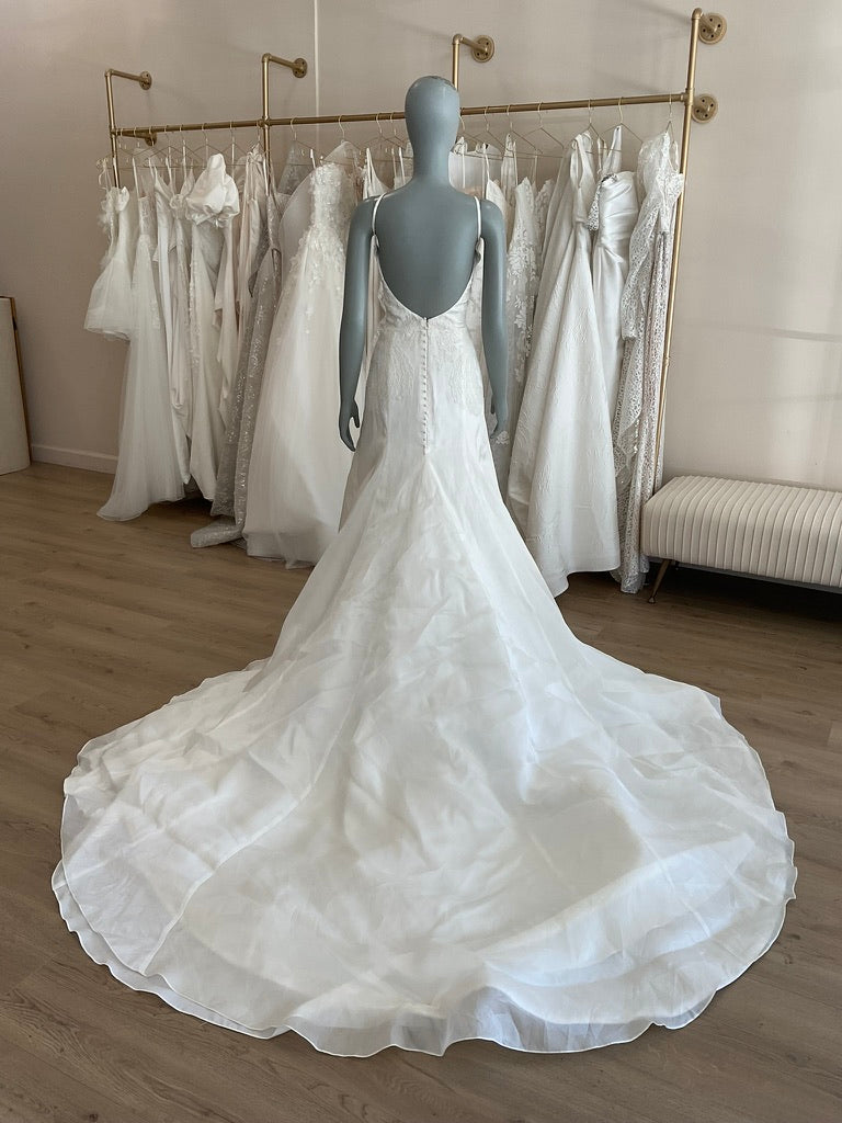 NOT LOCAL TO LA-Schedule a free 30 minute virtual fitting appointment before it's too late. Our inventory of hard to find wedding dresses is limited, and this is the only dress in stock and is available on a first come, first-served basis. Click here for a virtual Appointment