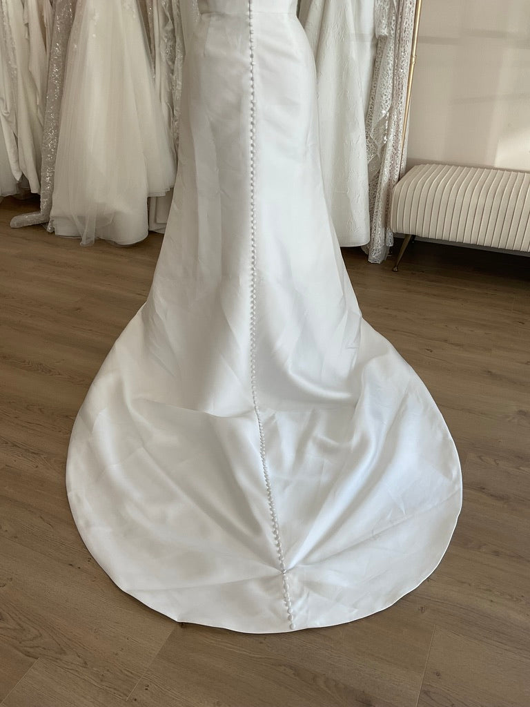 NOT LOCAL TO LA-Schedule a free 30 minute virtual fitting appointment before it's too late. Our inventory of hard to find wedding dresses is limited, and this is the only dress in stock and is available on a first come, first-served basis. Click here for a virtual Appointment