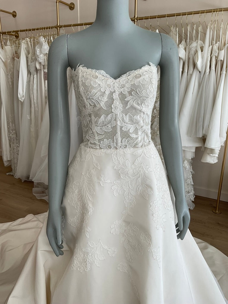 NOT LOCAL TO LA-Schedule a free 30 minute virtual fitting appointment before it's too late. Our inventory of hard to find wedding dresses is limited, and this is the only dress in stock and is available on a first come, first-served basis. Click here for a virtual Appointment