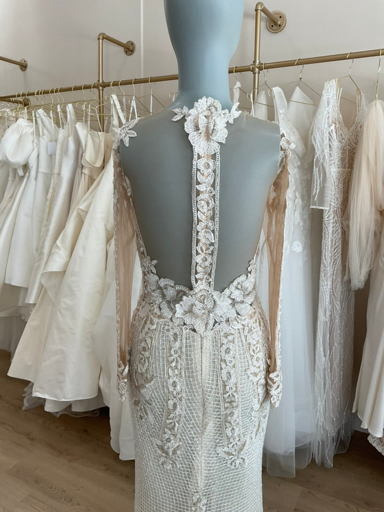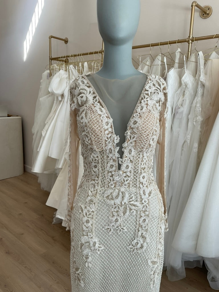 LOCAL TO LA-We would love to host you for a private one hour appointment in our Beverly Hills Showroom. During our time together, you will try on this gown and any others you would like and bring two guests with you. Click here for an in-store Appointment