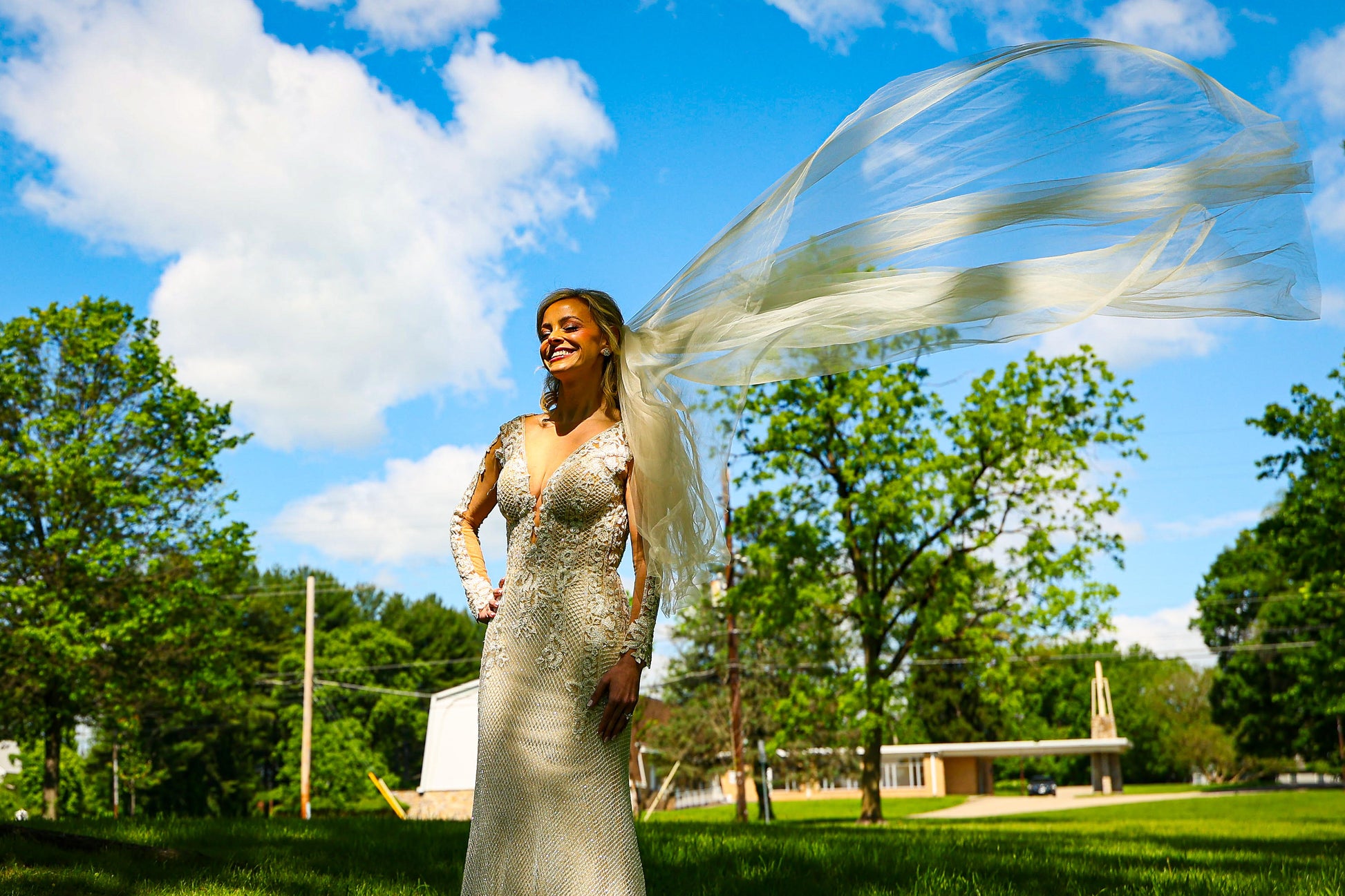 Comes with : Comes with Champagne colored Chapel Length Veil