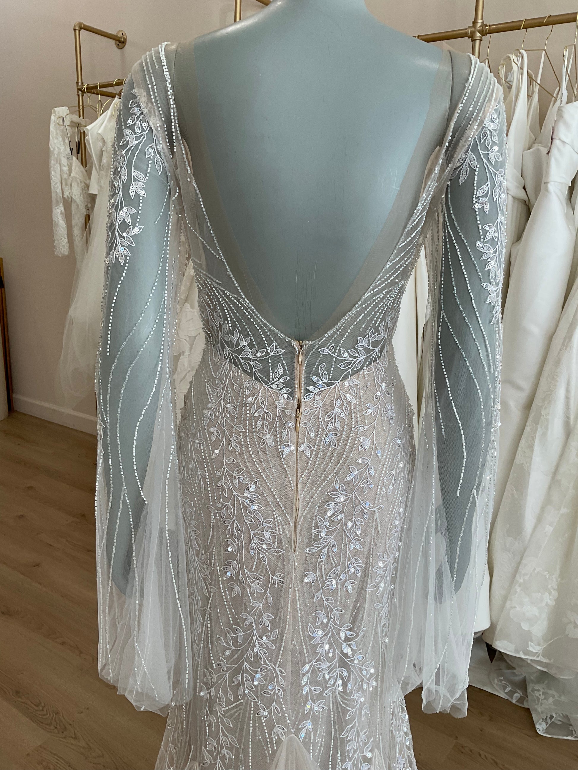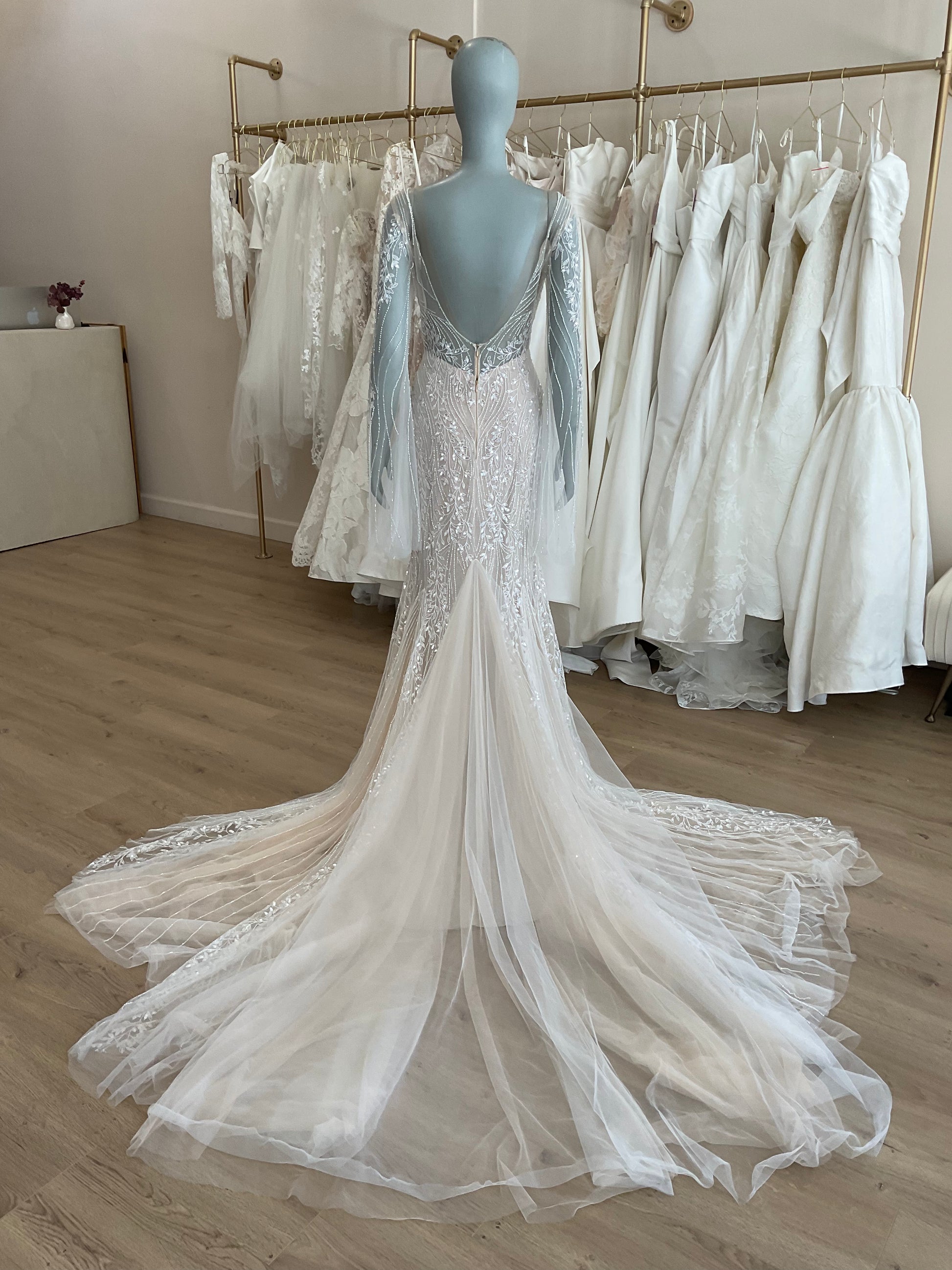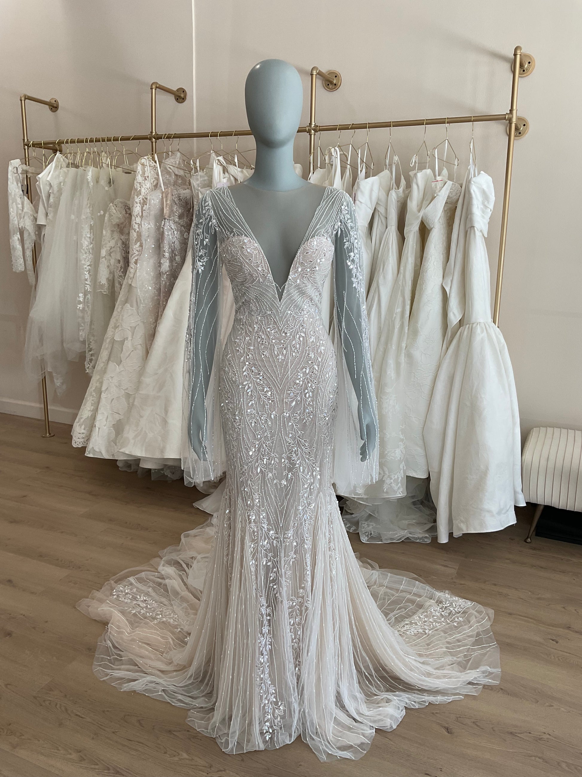 LOCAL TO LA-We would love to host you for a private one hour appointment in our Beverly Hills Showroom. During our time together, you will try on this gown and any others you would like and bring two guests with you. Click here for an in-store Appointment