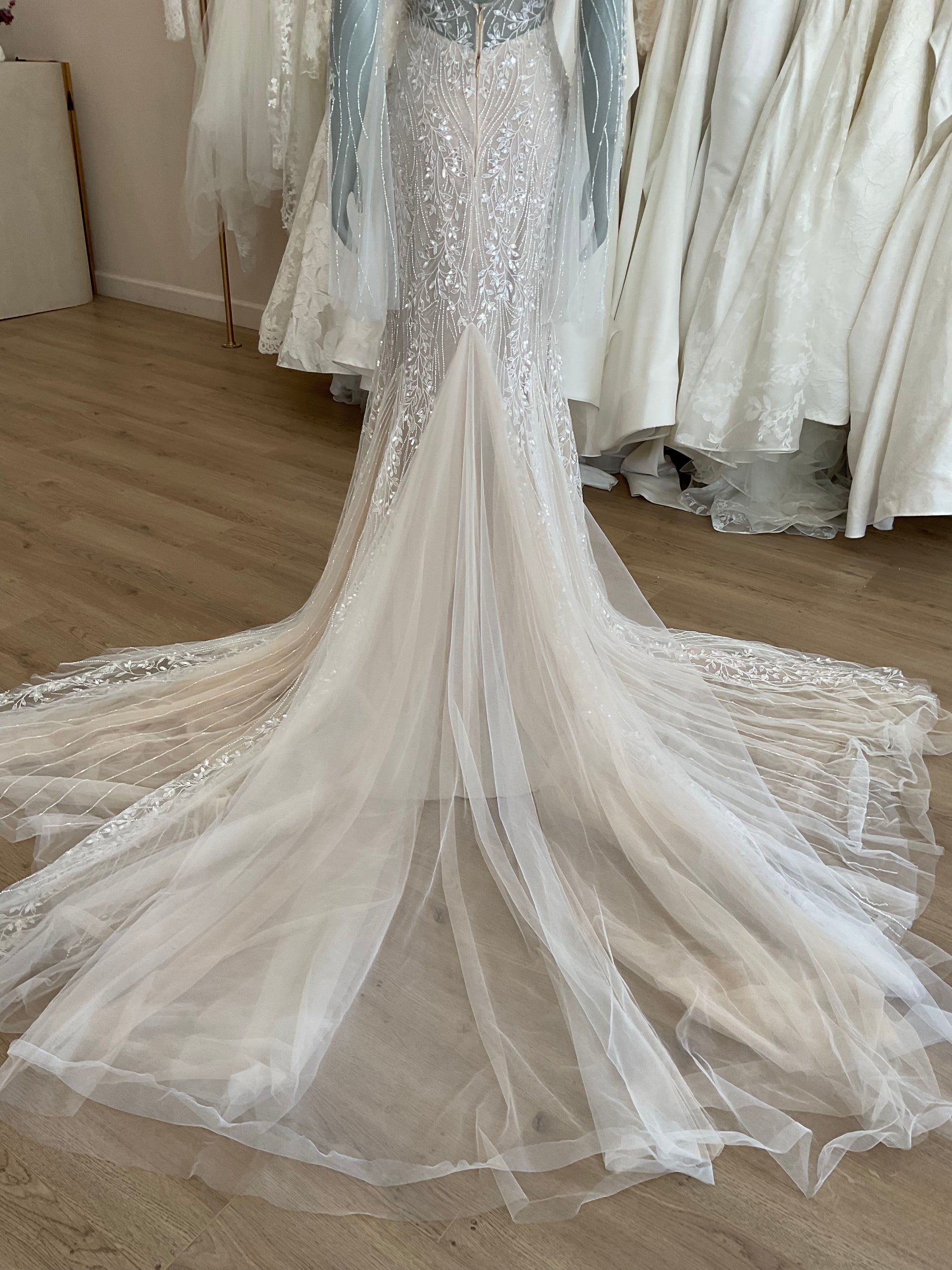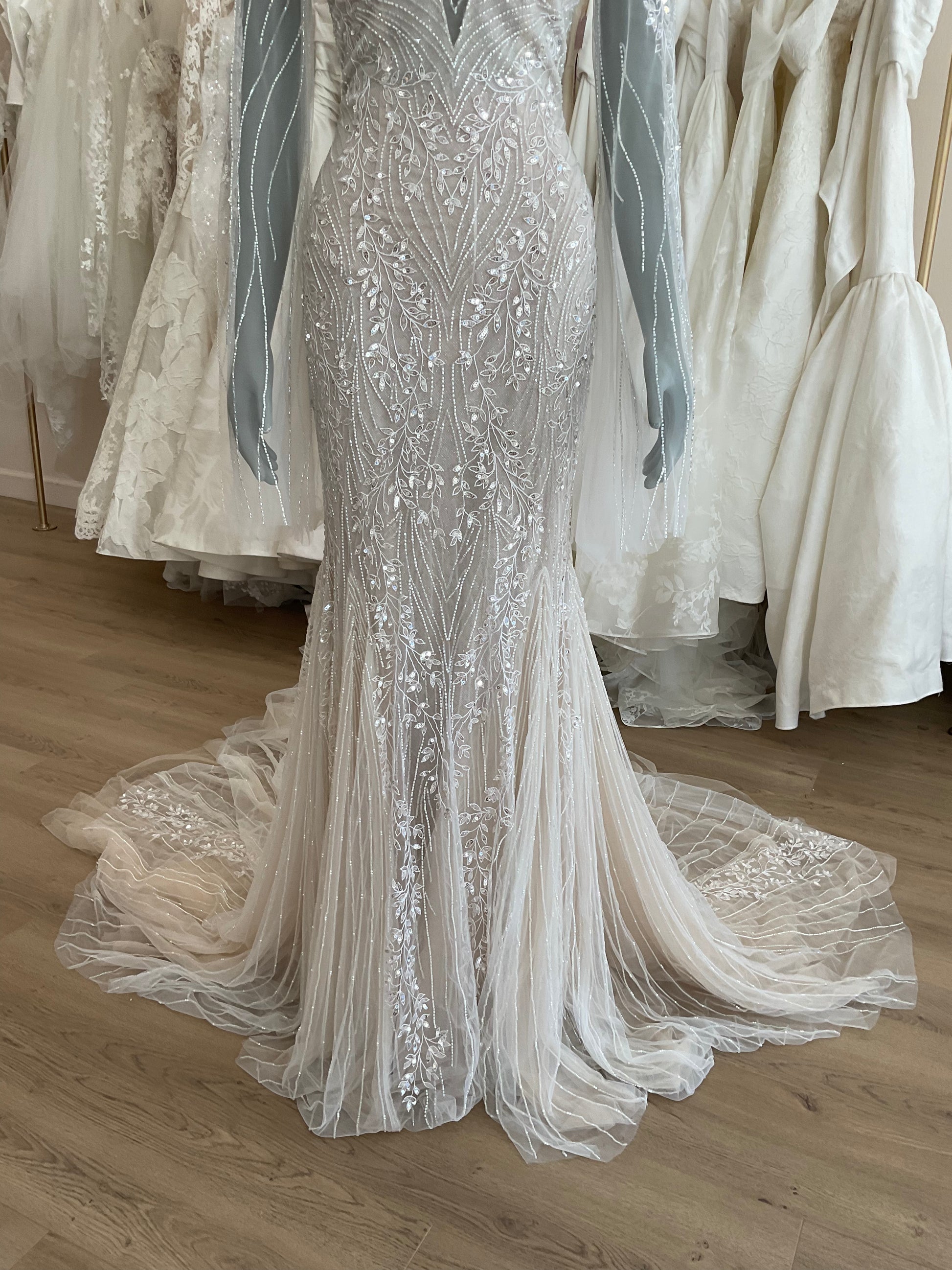 NOT LOCAL TO LA-Schedule a free 30 minute virtual fitting appointment before it's too late. Our inventory of hard to find wedding dresses is limited, and this is the only dress in stock and is available on a first come, first-served basis. Click here for a virtual Appointment