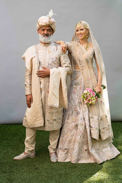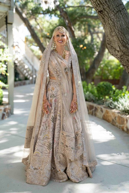 Info: The Matsya Lehenga Set is a great option for the either brides or guests in a traditional Indian ceremony. The set comes with a crop top with a corset closure, matching aline skirt, tulle veil and dupatta (wrap).