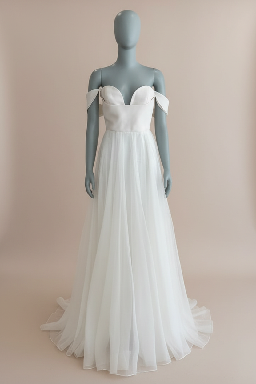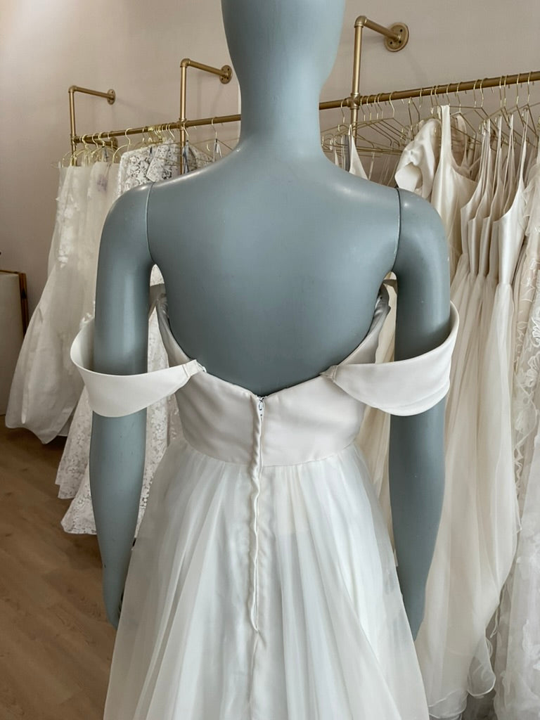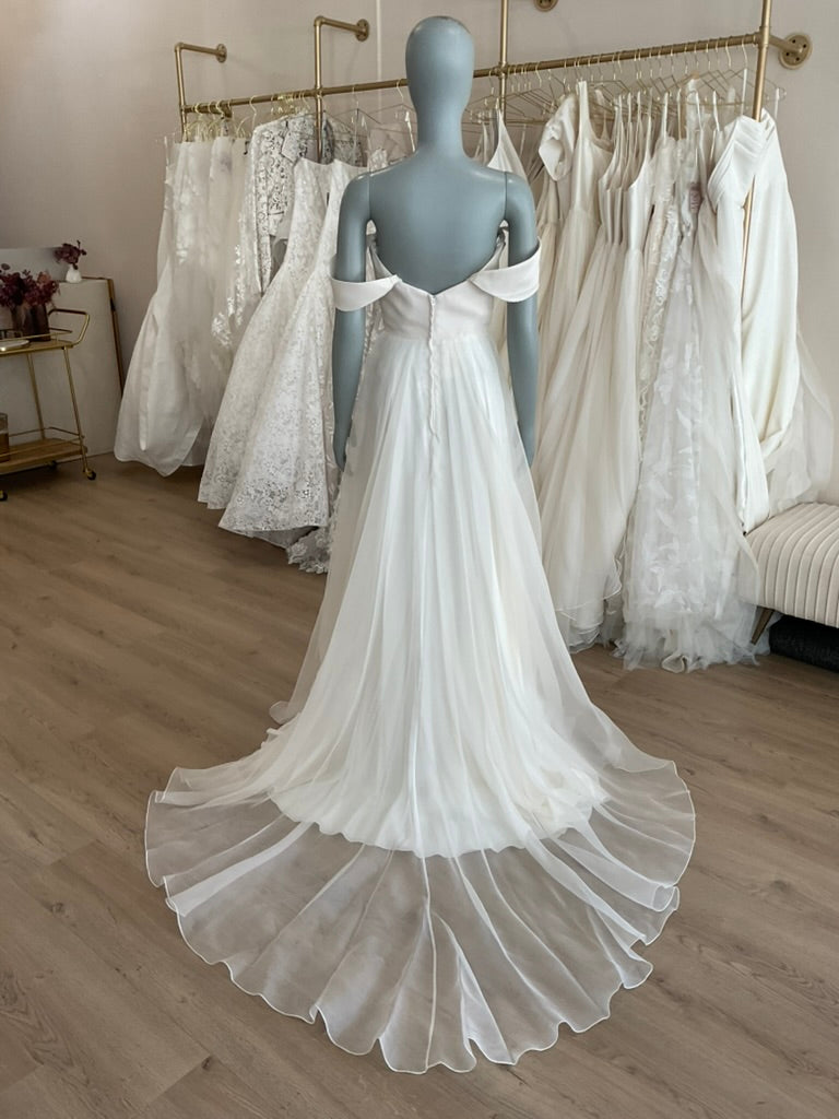 The Leanne Marshall Floria gown is the epitome of ethereal romance. Crafted for the effortlessly elegant bride, this gown features a structured silk bodice with a modern sweetheart neckline that flatters the décolletage with soft curves. The bodice’s clean lines transition seamlessly into a dreamy, full A-line skirt made from layers of delicate silk organza that catch the light and movement with every step. Light as air and utterly timeless, the Floria is perfect for brides seeking simplicity, grace, and a touch of modern femininity. Ideal for garden weddings, beach ceremonies, or any celebration that calls for chic, understated beauty.