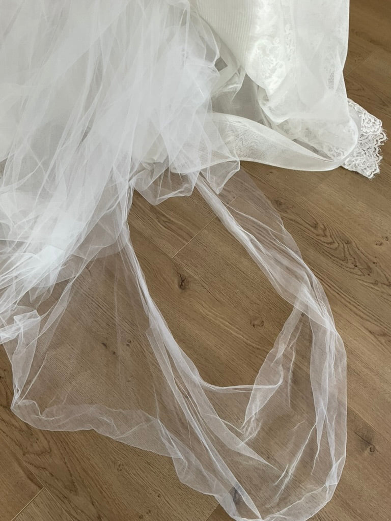 By purchasing this gown, you agree and understand that this gown is not brand new and may be subject to alterations/cleaning (which is a separate fee that Loved Twice Bridal is not responsible for) in order to make it perfect for your big day. There are no refunds, returns, or exchanges.