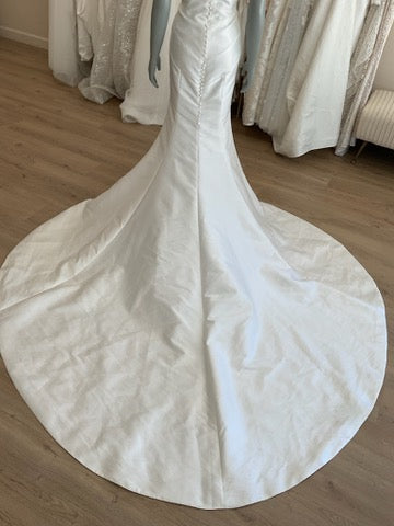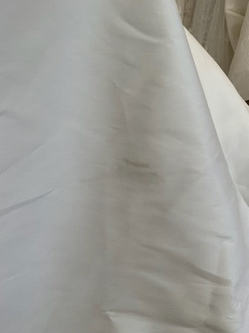 Flaws: The gown was a sample and has imperfections along the zipper and train.