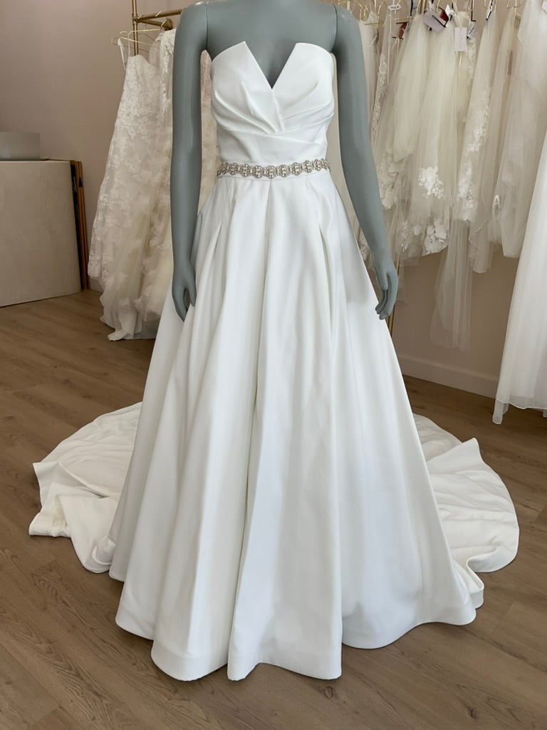 NOT LOCAL TO LA-Schedule a free 30 minute virtual fitting appointment before it's too late. Our inventory of hard to find wedding dresses is limited, and this is the only dress in stock and is available on a first come, first-served basis. Click here for a virtual Appointment