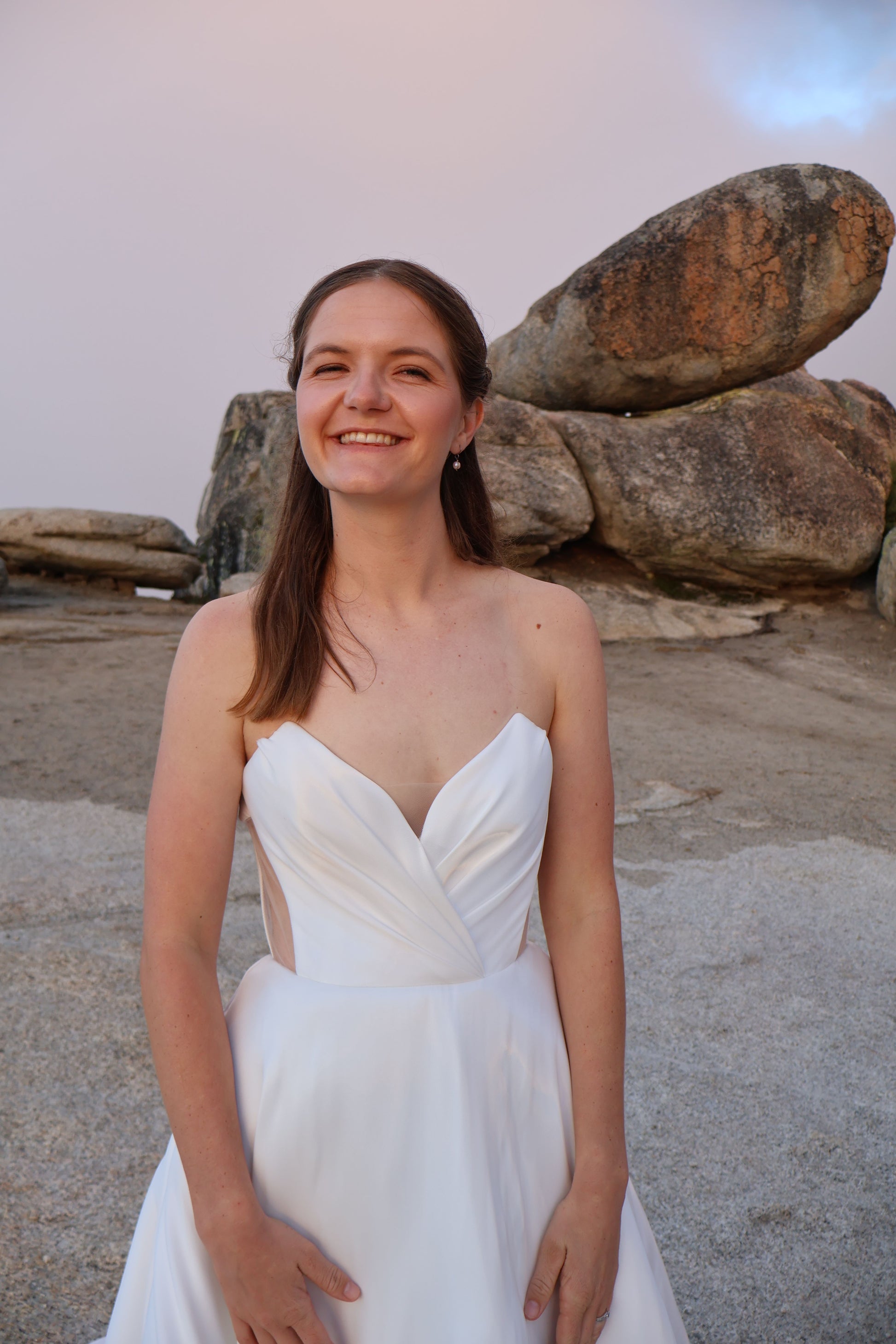 NOT LOCAL TO LA-Schedule a free 30 minute virtual fitting appointment before it's too late. Our inventory of hard to find wedding dresses is limited, and this is the only dress in stock and is available on a first come, first-served basis. Click here for a virtual Appointment