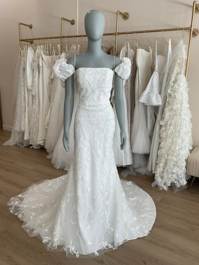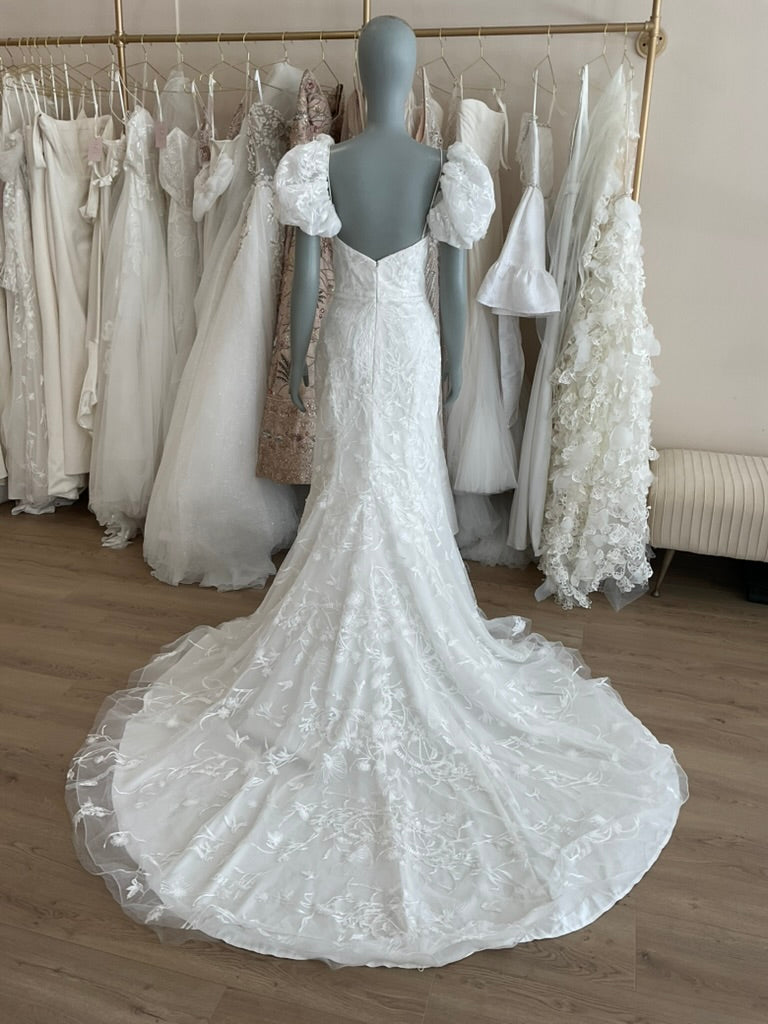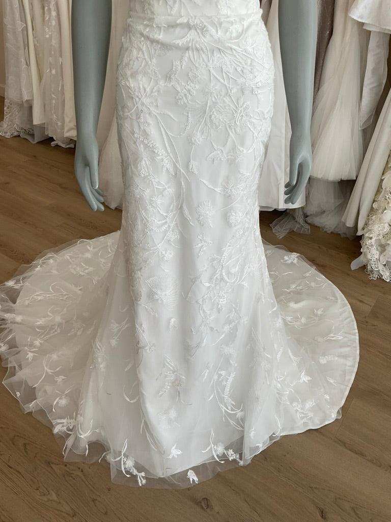NOT LOCAL TO LA-Schedule a free 30 minute virtual fitting appointment before it's too late. Our inventory of hard to find wedding dresses is limited, and this is the only dress in stock and is available on a first come, first-served basis. Click here for a virtual Appointment