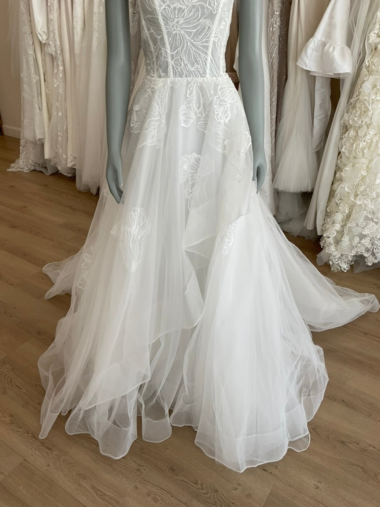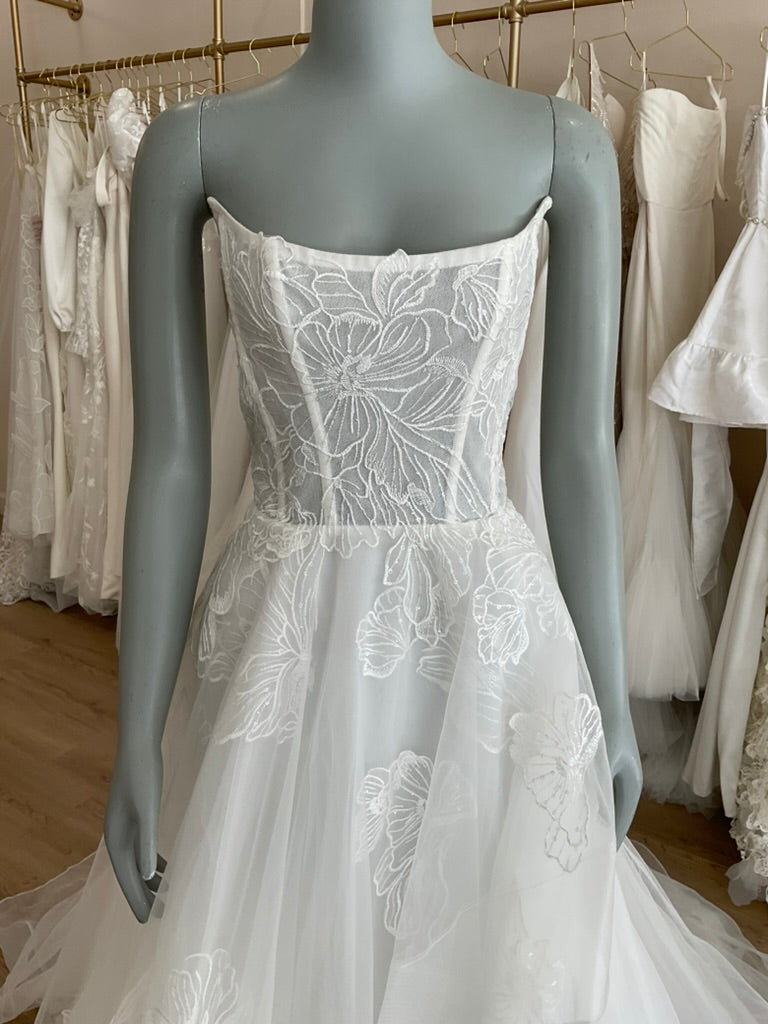 NOT LOCAL TO LA-Schedule a free 30 minute virtual fitting appointment before it's too late. Our inventory of hard to find wedding dresses is limited, and this is the only dress in stock and is available on a first come, first-served basis. Click here for a virtual Appointment