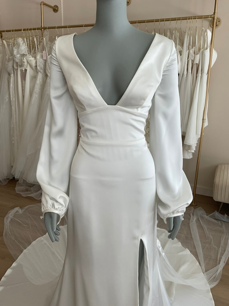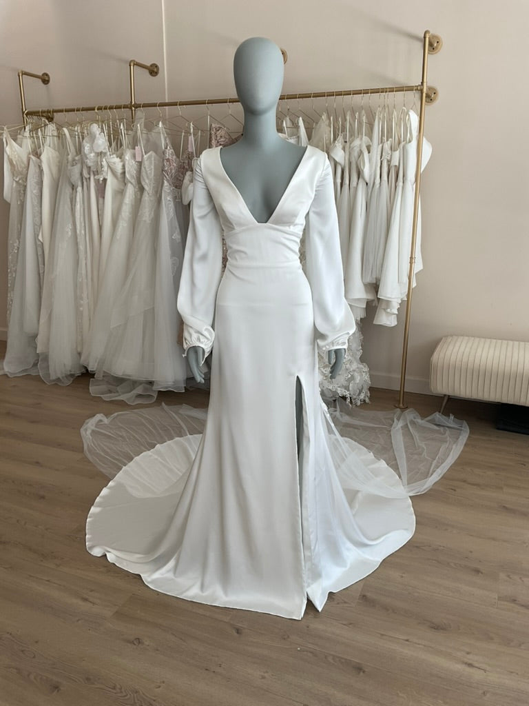 LOCAL TO LA-We would love to host you for a private one hour appointment in our Beverly Hills Showroom. During our time together, you will try on this gown and any others you would like and bring two guests with you. Click here for an in-store Appointment