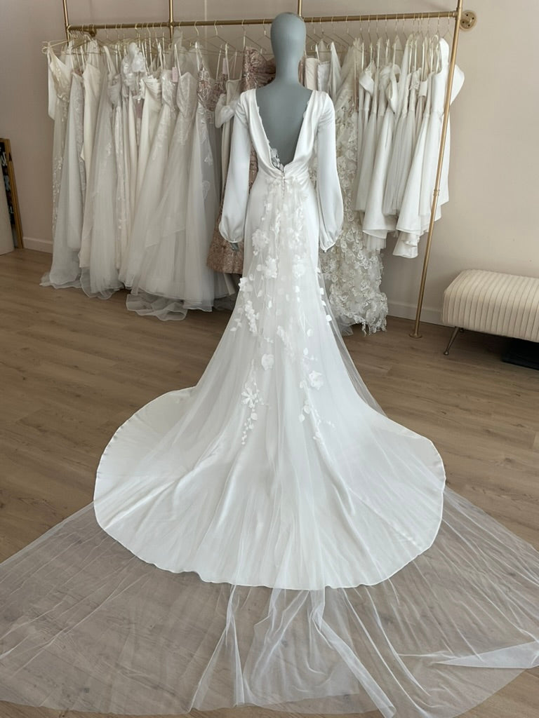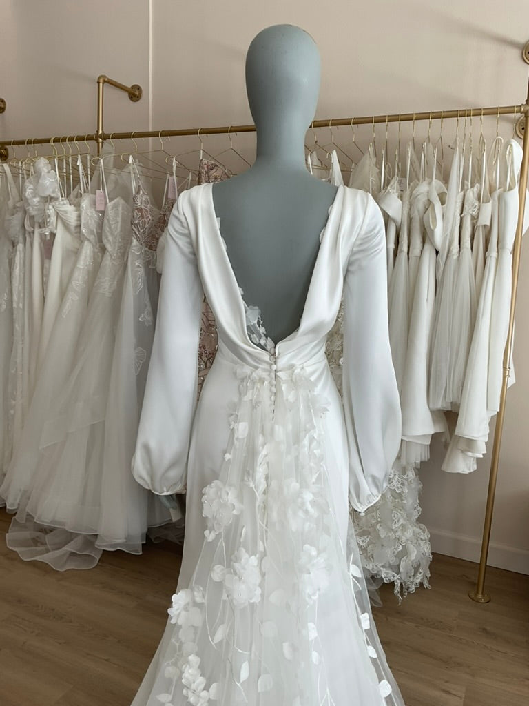 NOT LOCAL TO LA-Schedule a free 30 minute virtual fitting appointment before it's too late. Our inventory of hard to find wedding dresses is limited, and this is the only dress in stock and is available on a first come, first-served basis. Click here for a virtual Appointment