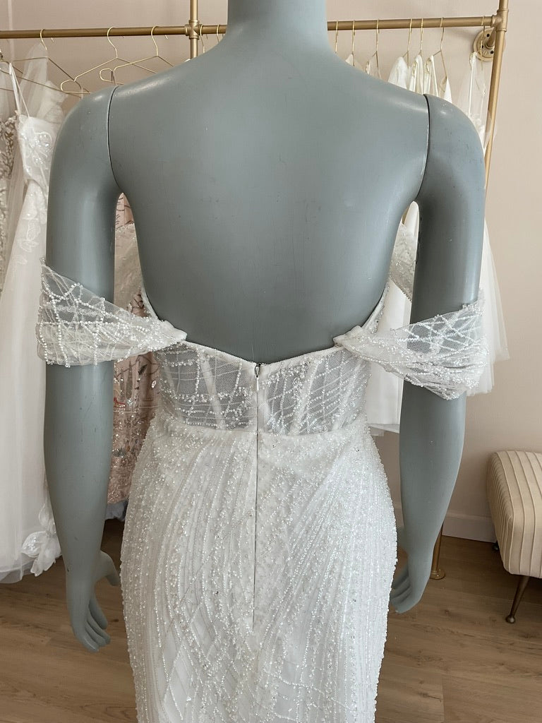 LOCAL TO LA-We would love to host you for a private one hour appointment in our Beverly Hills Showroom. During our time together, you will try on this gown and any others you would like and bring two guests with you. Click here for an in-store Appointment