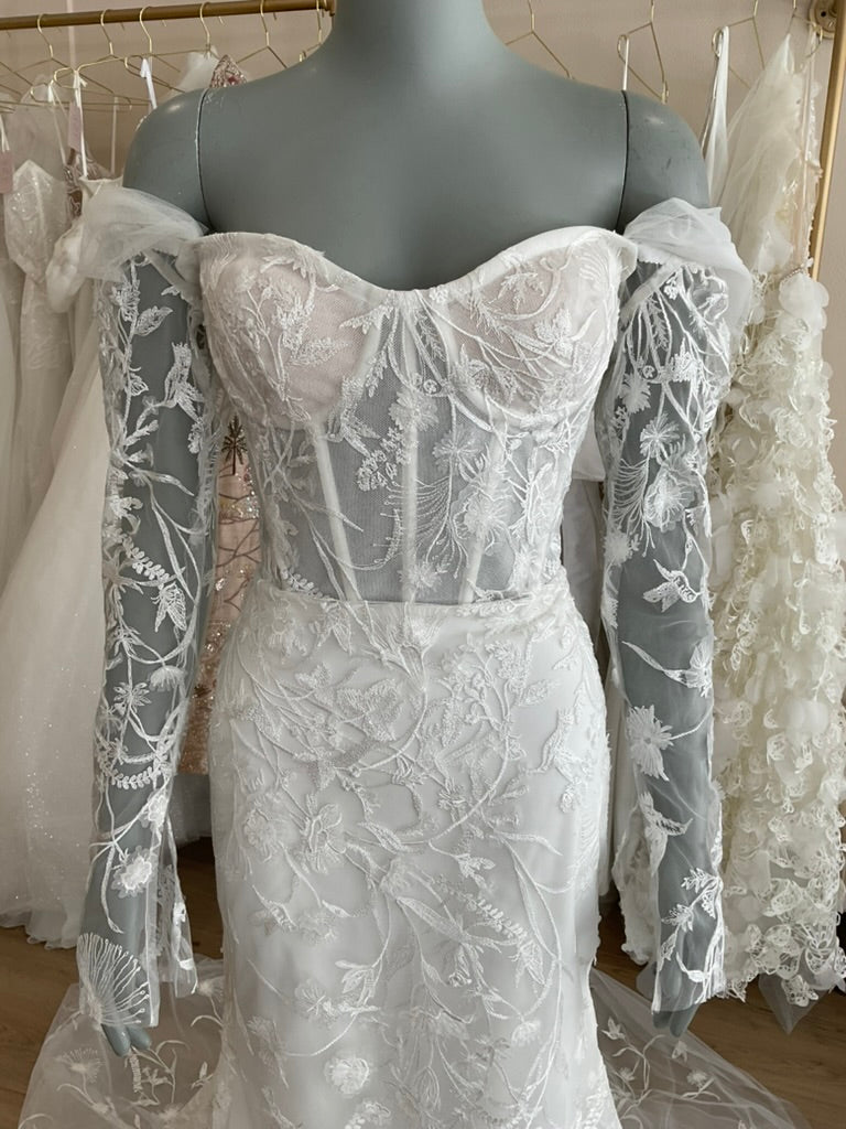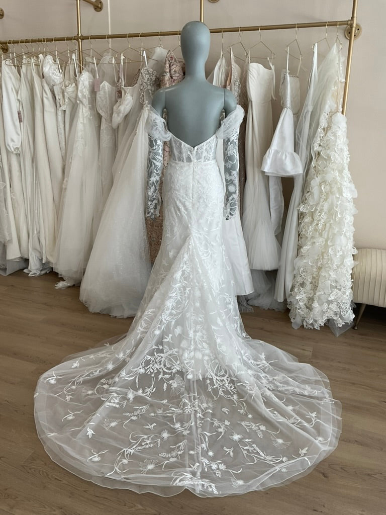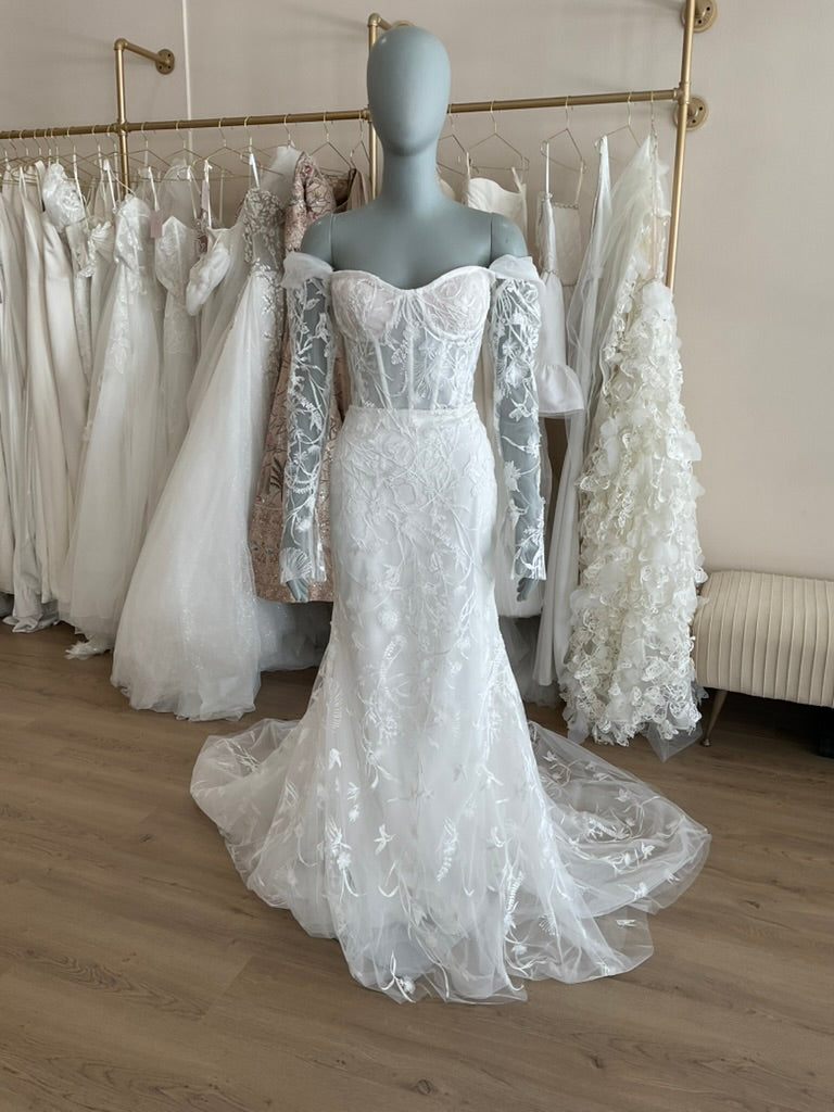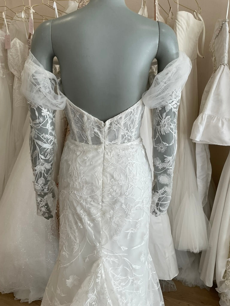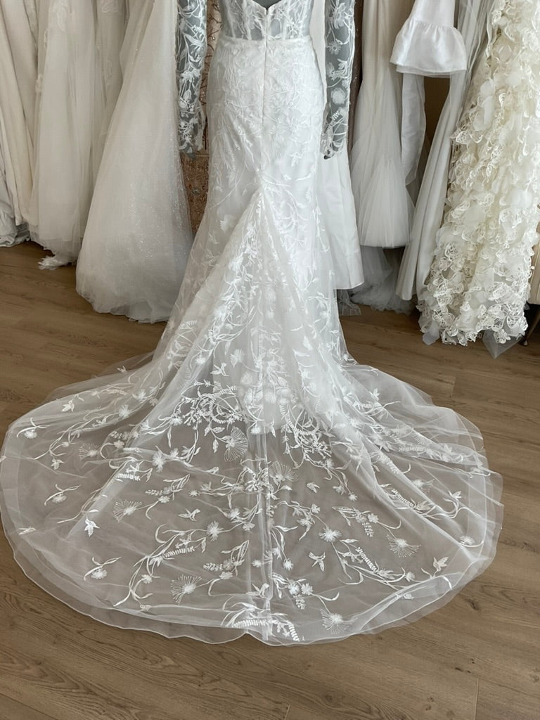 NOT LOCAL TO LA-Schedule a free 30 minute virtual fitting appointment before it's too late. Our inventory of hard to find wedding dresses is limited, and this is the only dress in stock and is available on a first come, first-served basis. Click here for a virtual Appointment