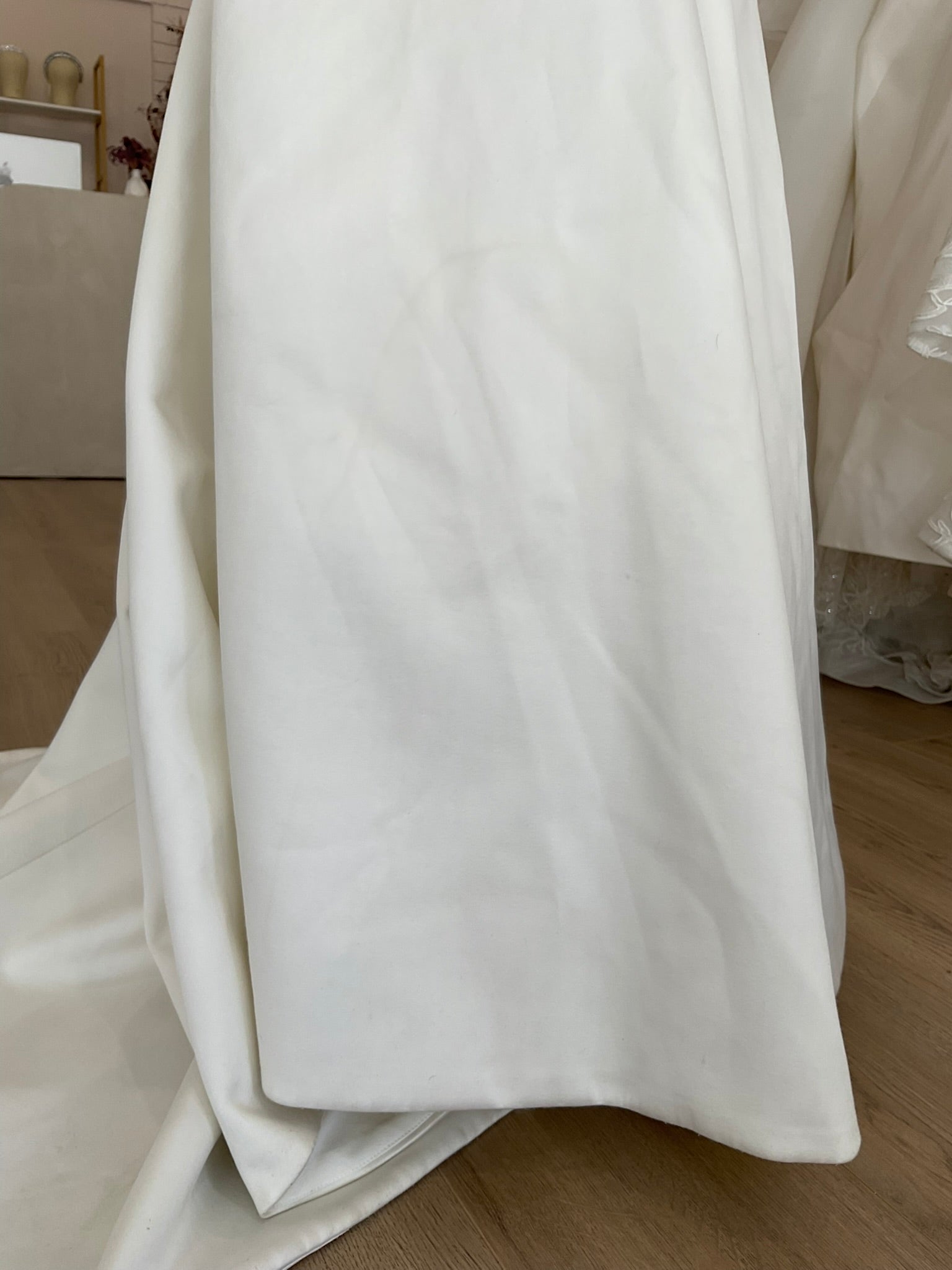 Flaws: There are very subtle pulls in the fabric throughout the gown.