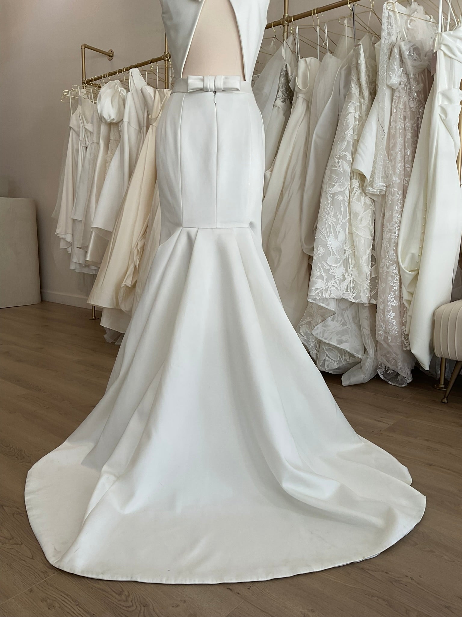LOCAL TO LA-We would love to host you for a private one hour appointment in our Beverly Hills Showroom. During our time together, you will try on this gown and any others you would like and bring two guests with you. Click here for an in-store Appointment
