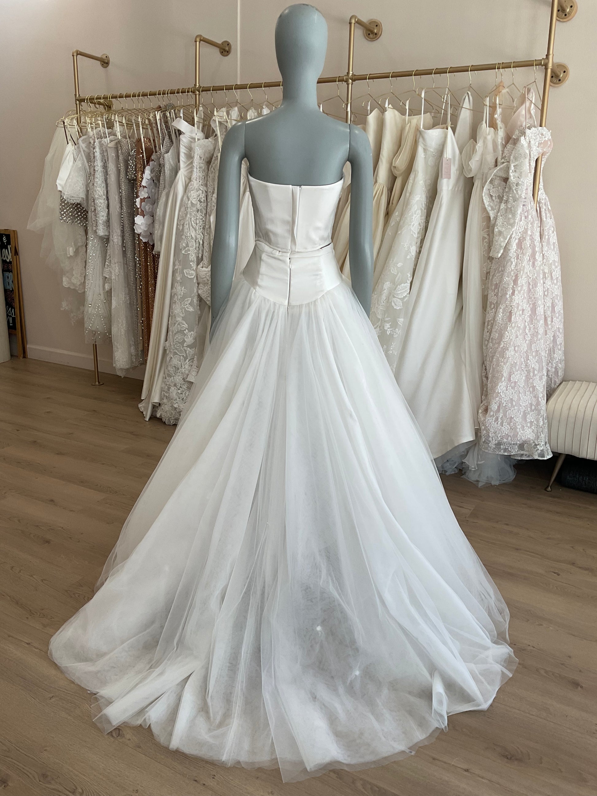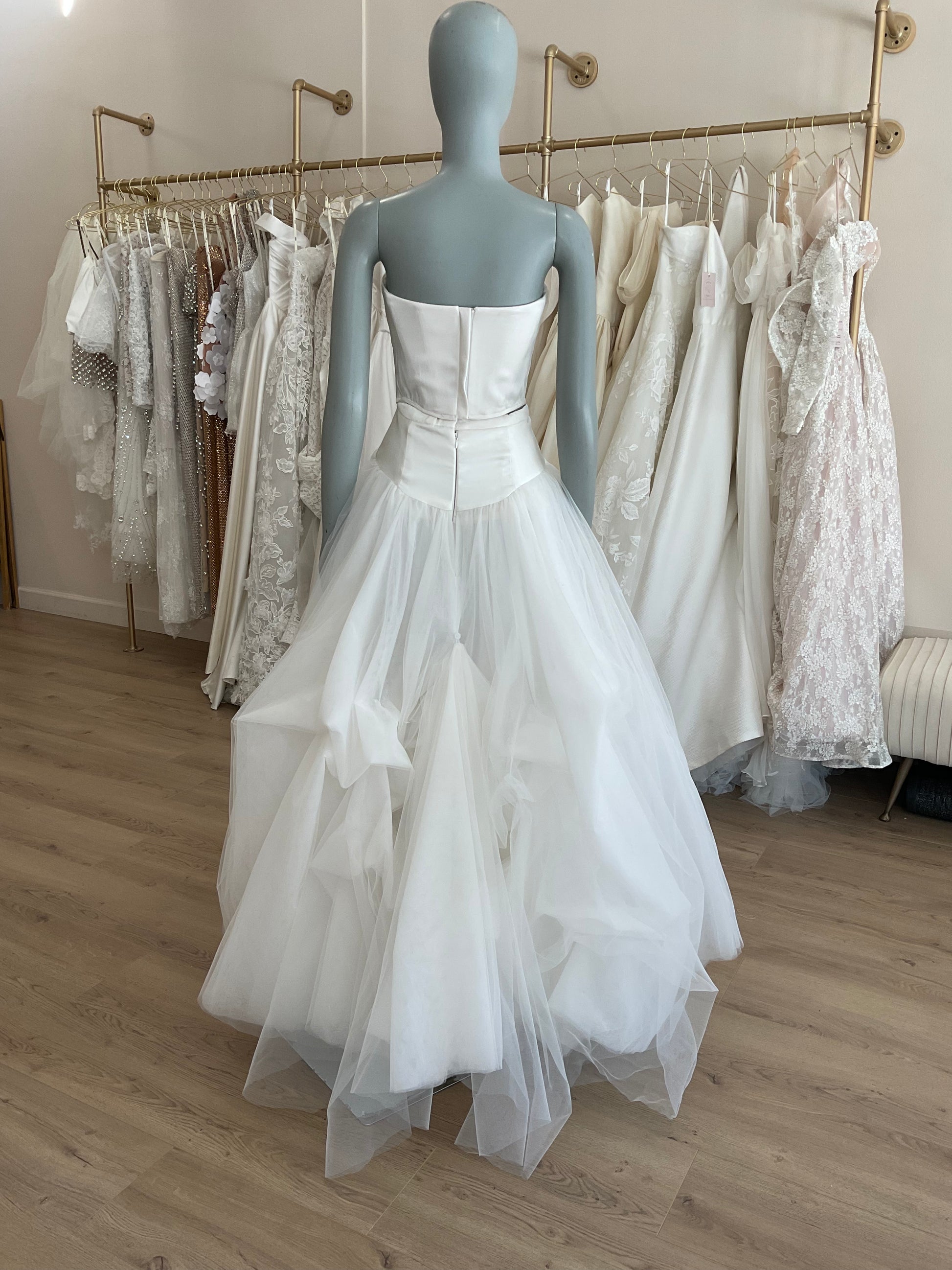 LOCAL TO LA-We would love to host you for a private one hour appointment in our Beverly Hills Showroom. During our time together, you will try on this gown and any others you would like and bring two guests with you. Click here for an in-store Appointment